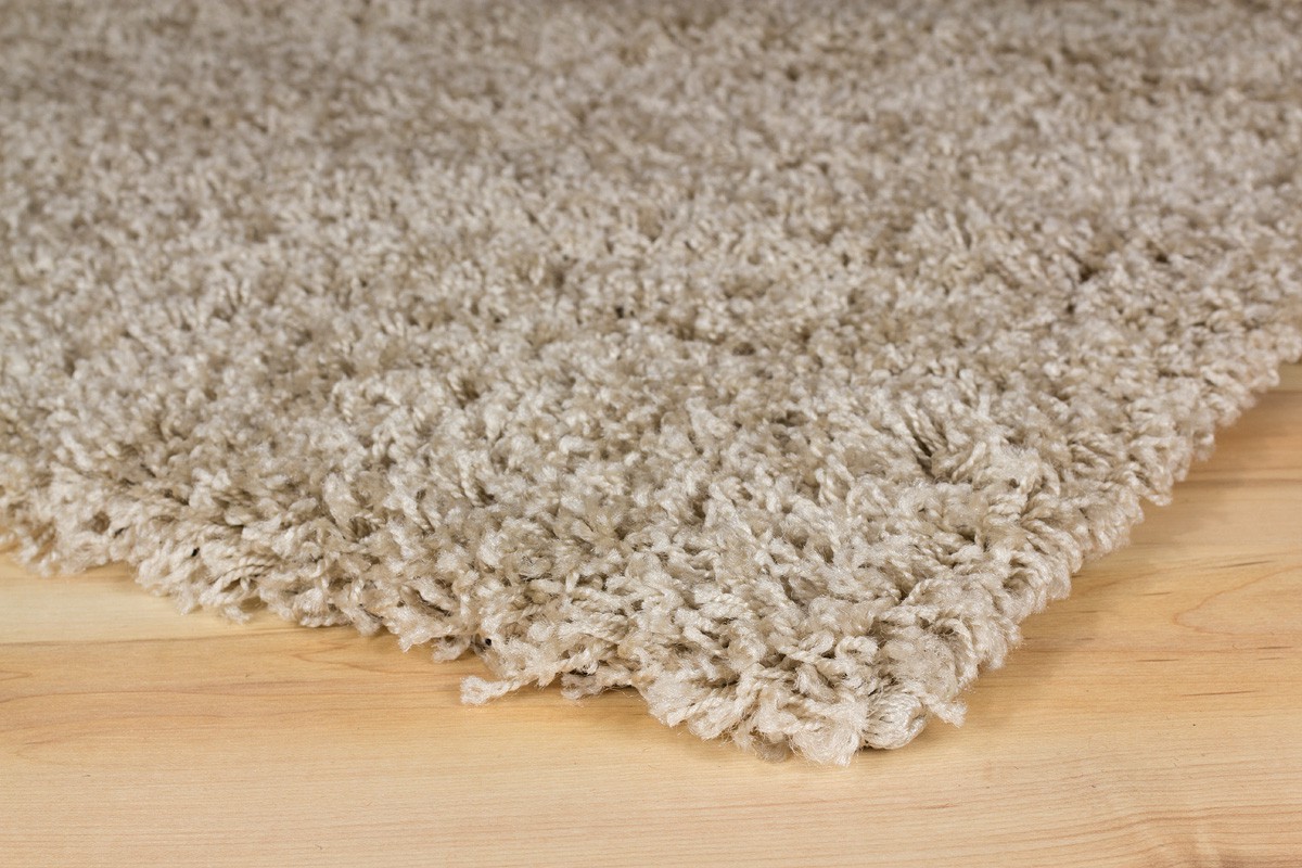This beige high-pile shaggy rug can be used in a variety of ways and fits into any living area. The carpet is cleanly processed, really robust and doesn't fluff. The carpet has a pleasantly dense pile, which makes it particularly easy to care for. You can simply vacuum it with a normal vacuum cleaner. This means the carpet will last a long time even under constant use.