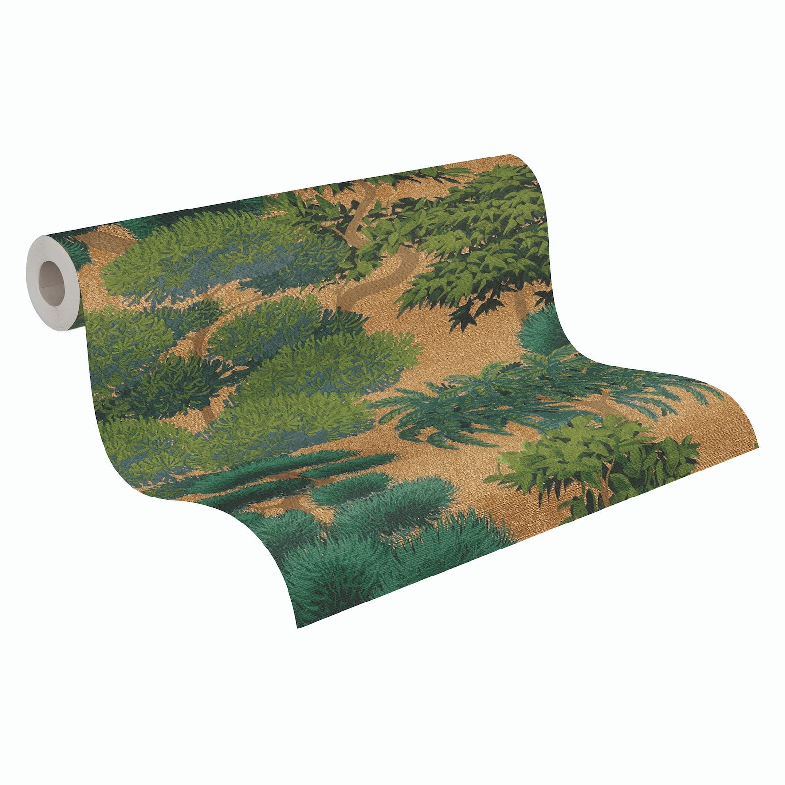 Non-woven wallpaper Jungle Green Gold Metallic 79161-2