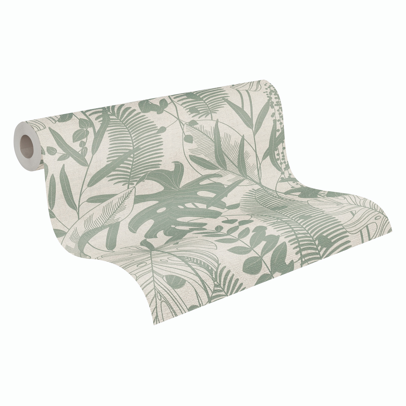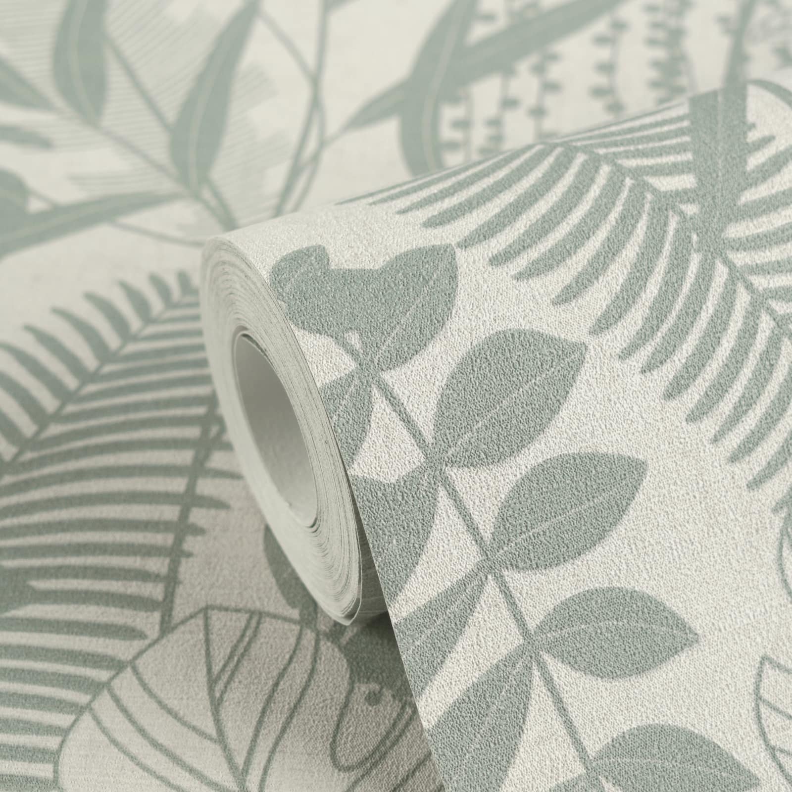 Non-woven wallpaper leaf pattern light grey green 79164-2