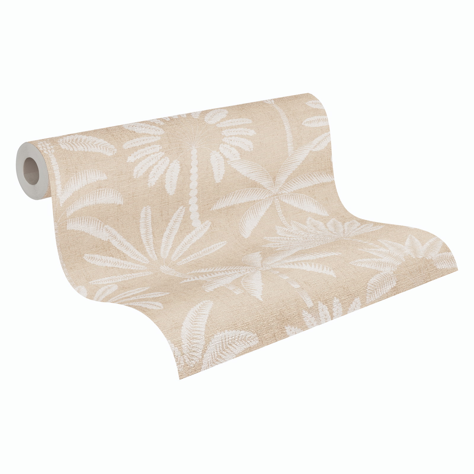This wallpaper from the Cuba 2 collection by AS Creation combines a tropical lifestyle with modern interior design. It allows you to personalize your living spaces. The non-woven wallpaper 79163-1 features a tropical palm tree motif on a textile-look background in beige and cream tones with a subtle metallic effect. Discover the entire collection now in our shop.