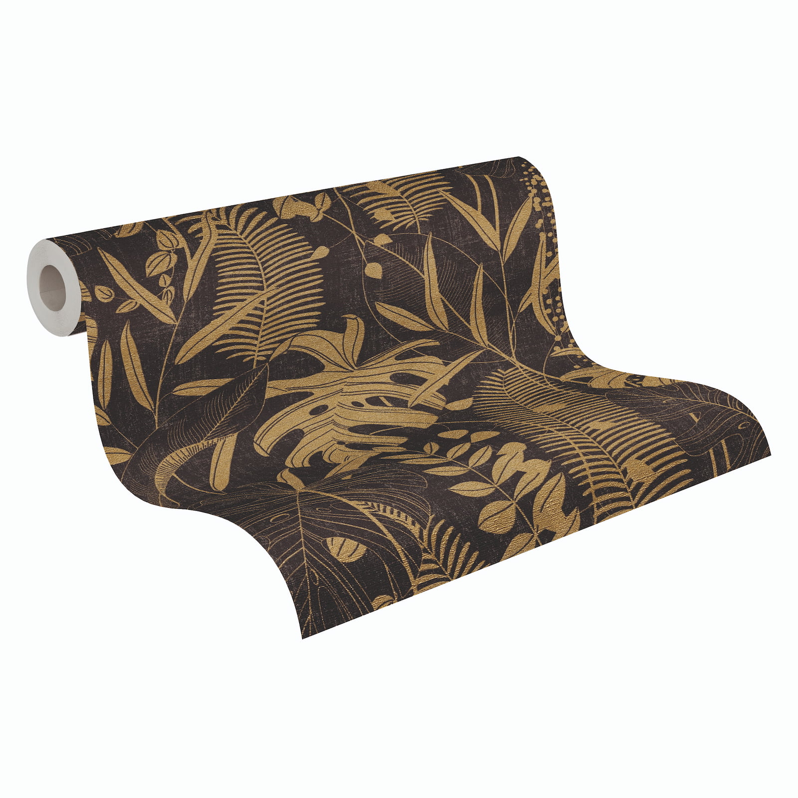 Non-woven wallpaper leaves black gold metallic 79164-3