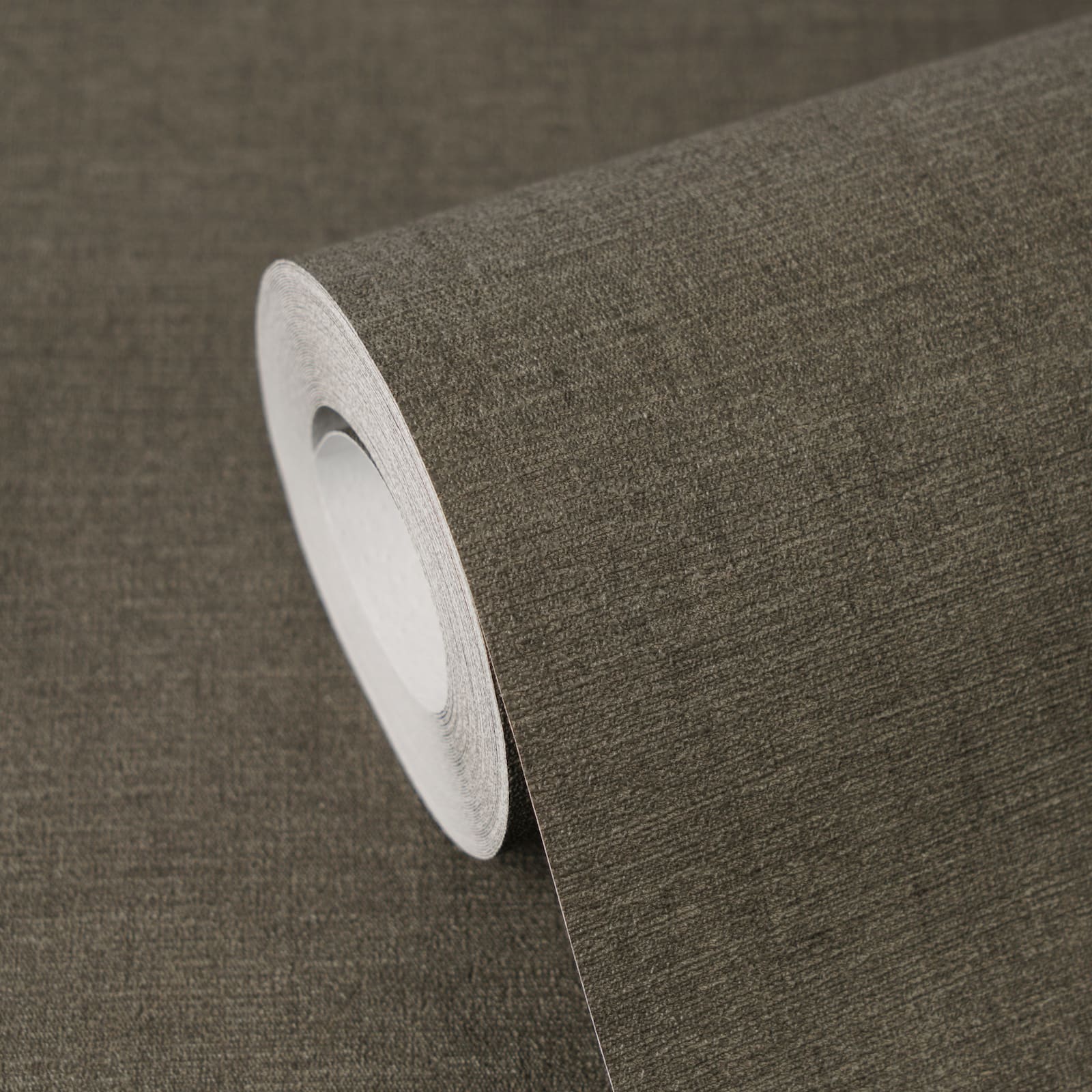 Non-woven wallpaper plain textile look dark brown 79166-4