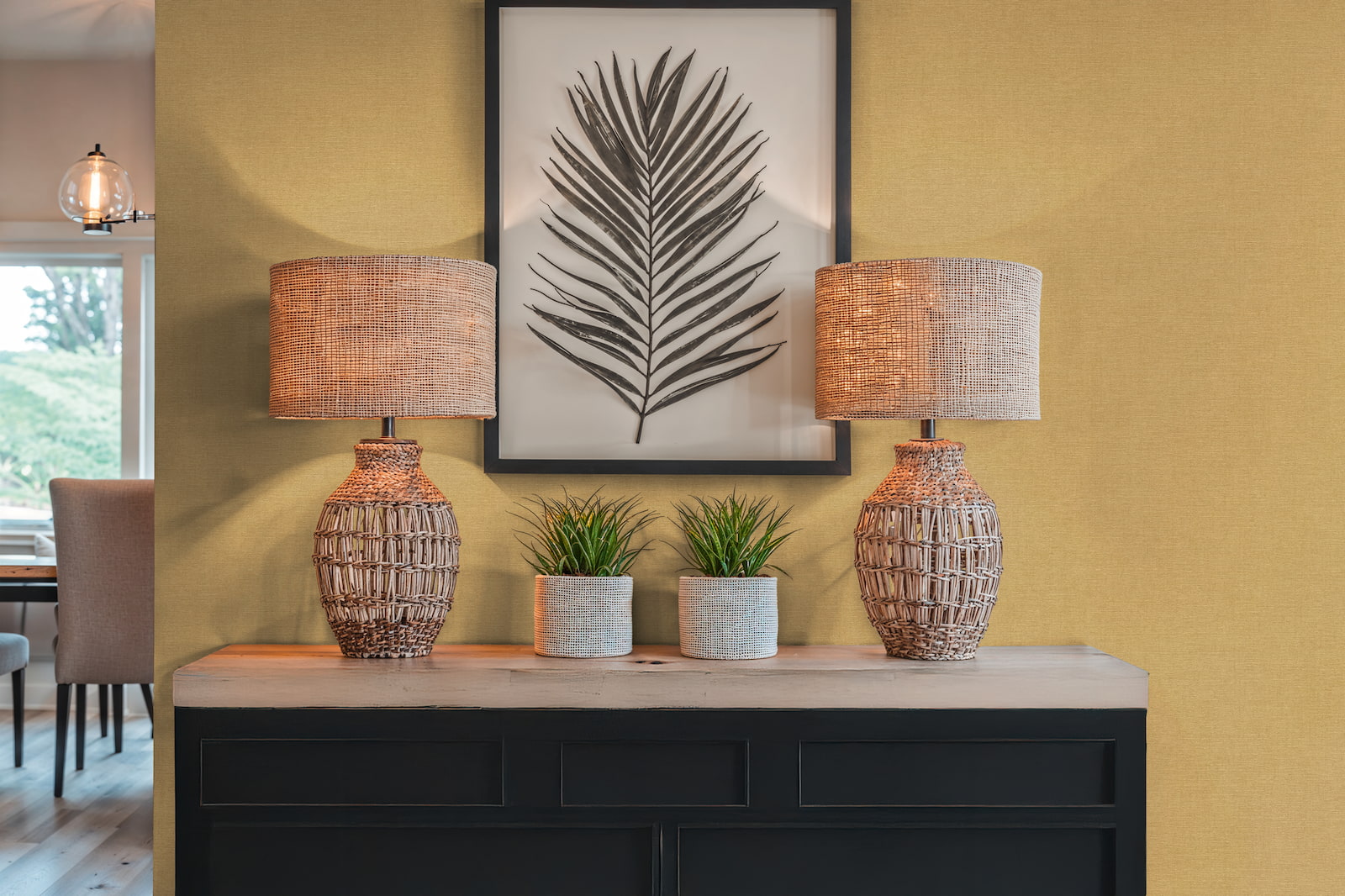 This wallpaper from the Cuba 2 collection by AS Creation combines a tropical lifestyle with modern interior design. It allows you to personalize your living spaces. The non-woven wallpaper 79166-3 is a plain with a textile look and a subtle texture in shades of yellow. Discover the entire collection now in our shop.