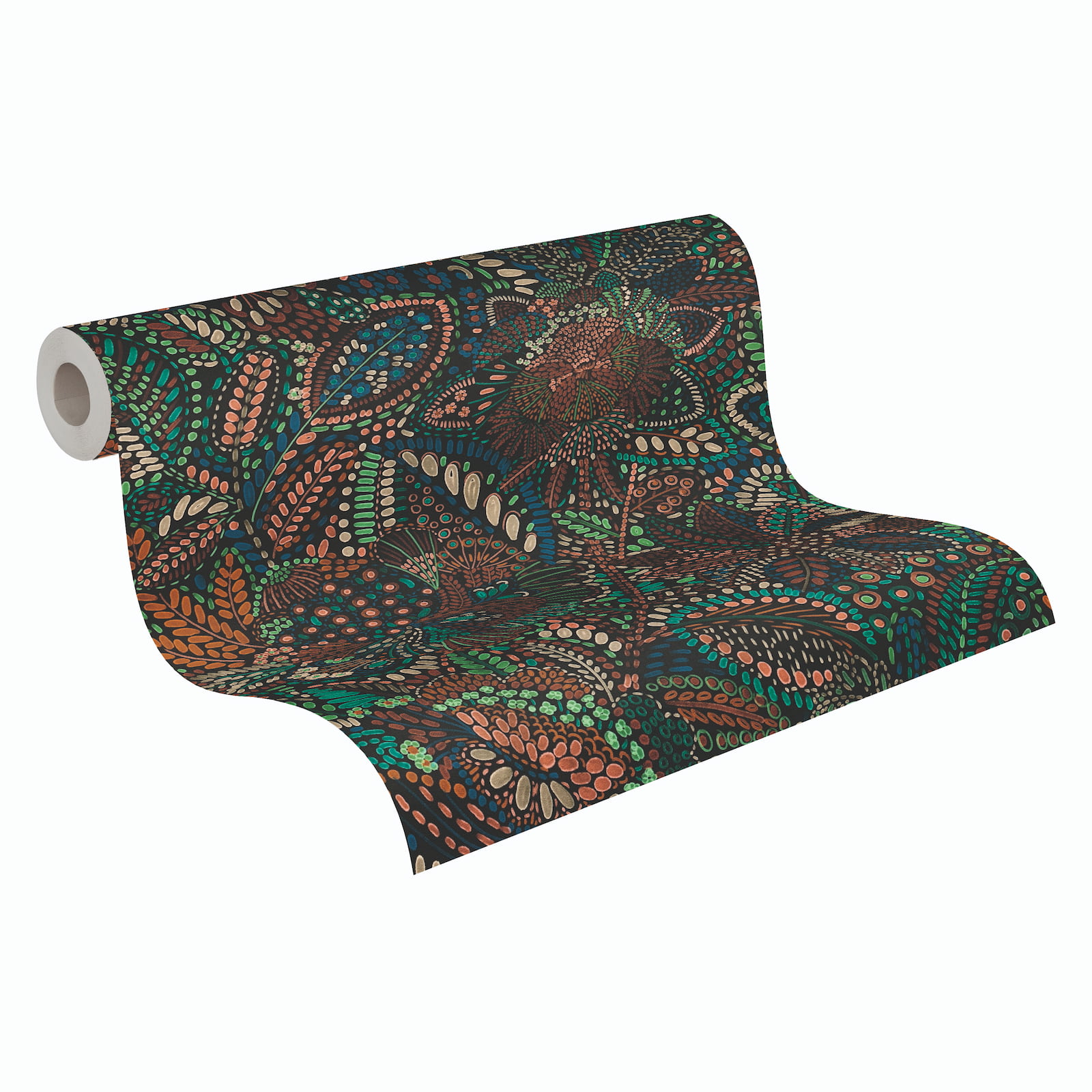 This wallpaper from the Cuba 2 collection by AS Creation combines a tropical lifestyle with modern interior design. It allows you to personalize your living spaces and add a unique touch. The non-woven wallpaper 78025-2 features a tropical, abstract leaf pattern in black, green, and orange tones. Discover the entire collection now in our shop.