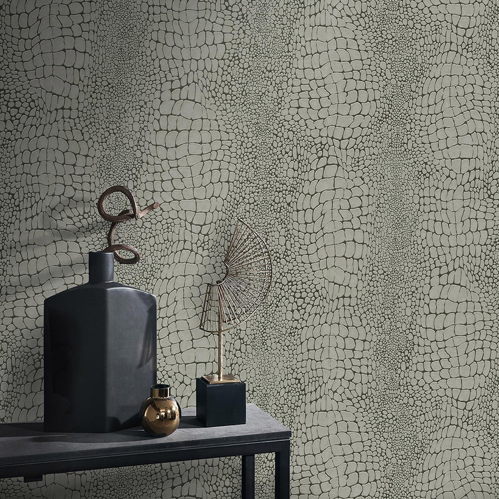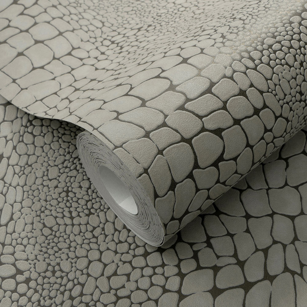 Non-woven wallpaper crocodile pattern brown grey 10529-11