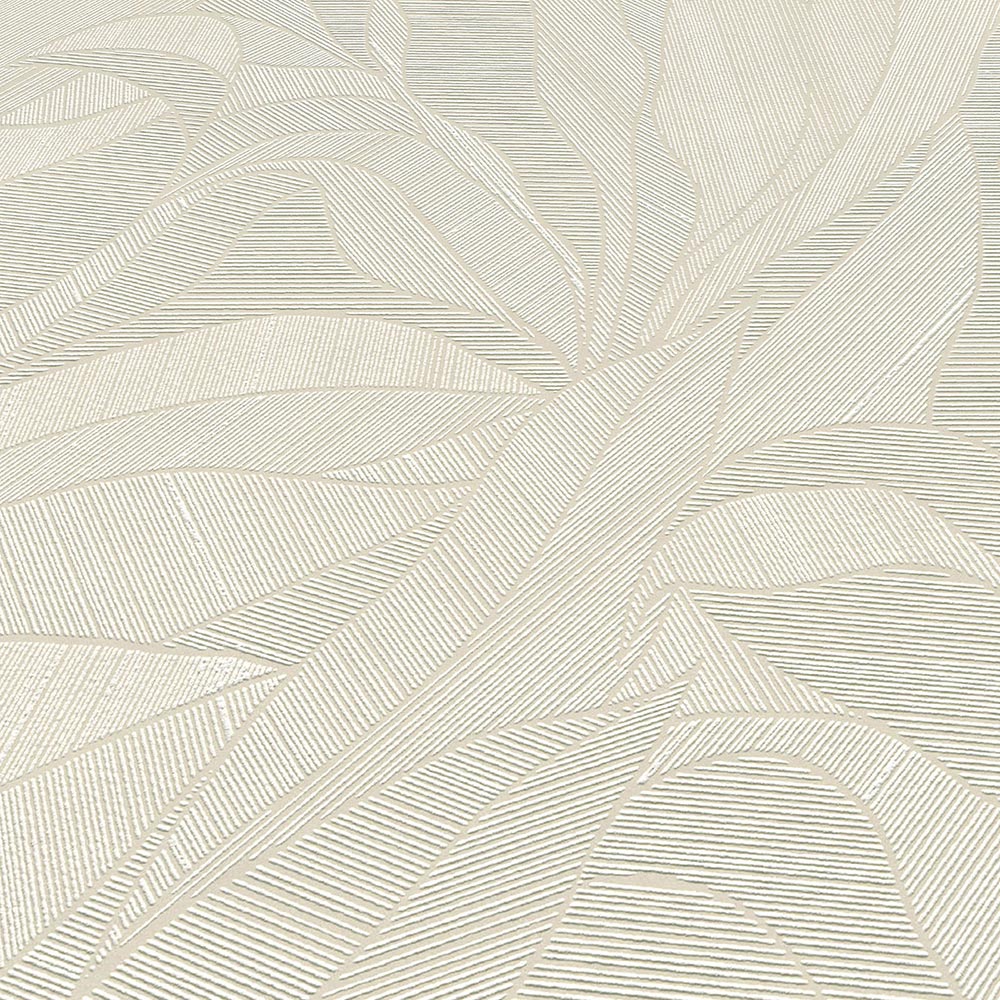 Non-woven wallpaper leaves cream beige metallic 10530-02
