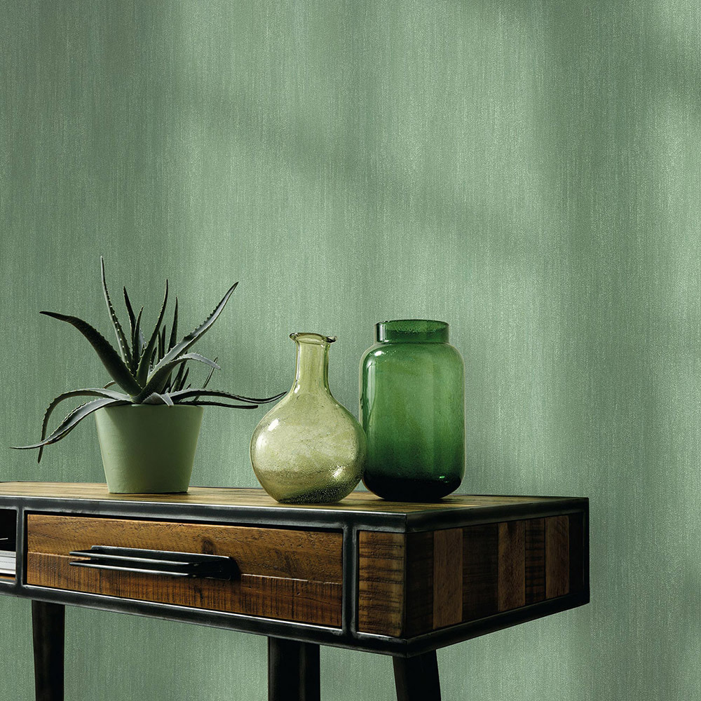 This wallpaper from the Cameo collection by Erismann brings textured clarity and timeless elegance to your home. The combination of rich texture and stylish design creates modern living spaces within your four walls. The non-woven wallpaper 10534-36 is a plain with a concrete look in shades of green. Discover the entire collection now in our shop.