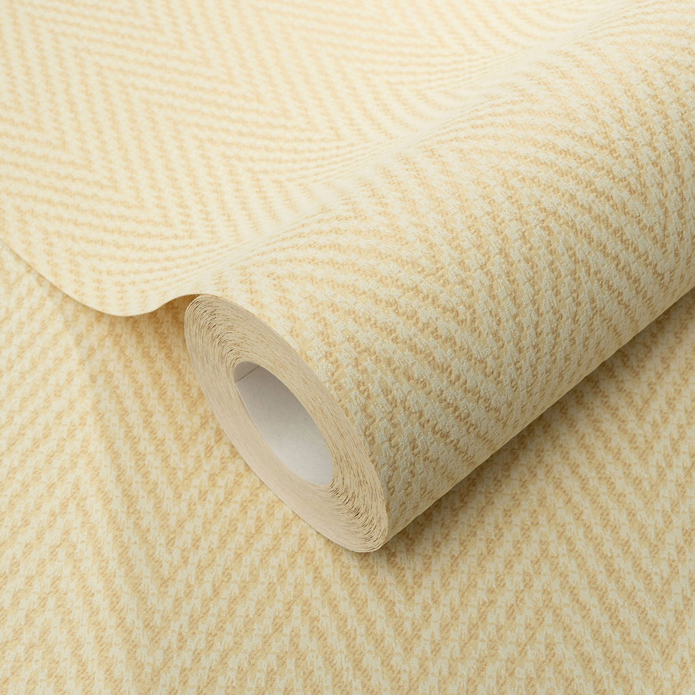 This wallpaper from the Cameo collection by Erismann brings textured clarity and timeless elegance to your home. The combination of rich texture and stylish design creates modern living spaces within your four walls. The non-woven wallpaper 10536-03 features a graphic pattern with a sisal look in yellow and cream tones. Discover the entire collection now in our shop.