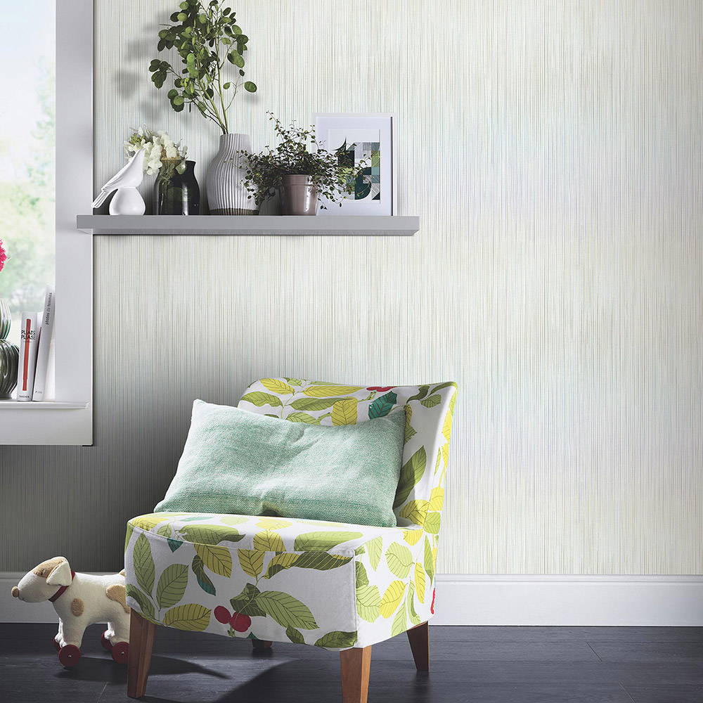 This wallpaper from the Cameo collection by Erismann brings textured clarity and timeless elegance to your home. The combination of rich texture and stylish design creates modern living spaces within your four walls. The non-woven wallpaper 10533-07 features a pattern with lines and texture in white, green, and blue tones. Discover the entire collection now in our shop.