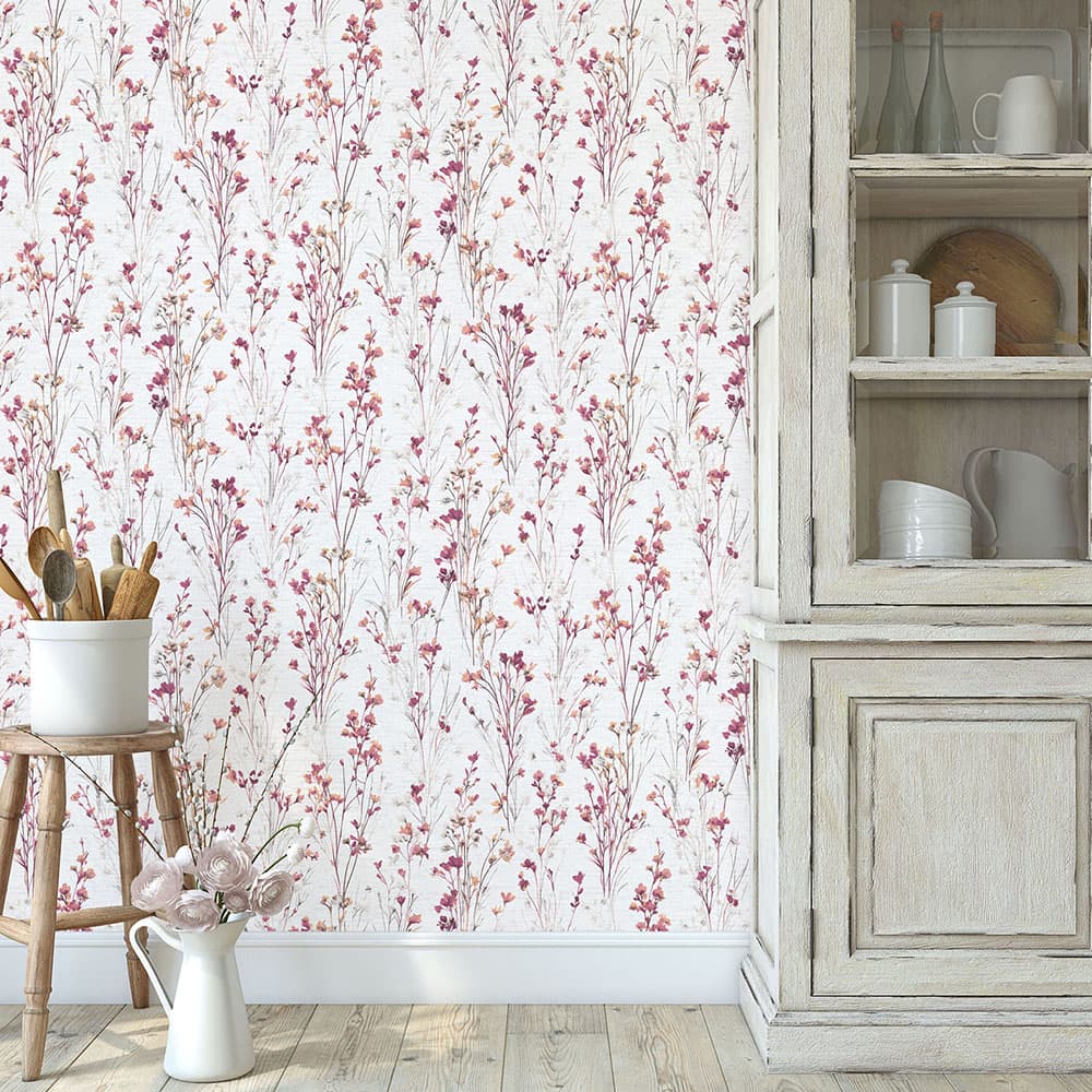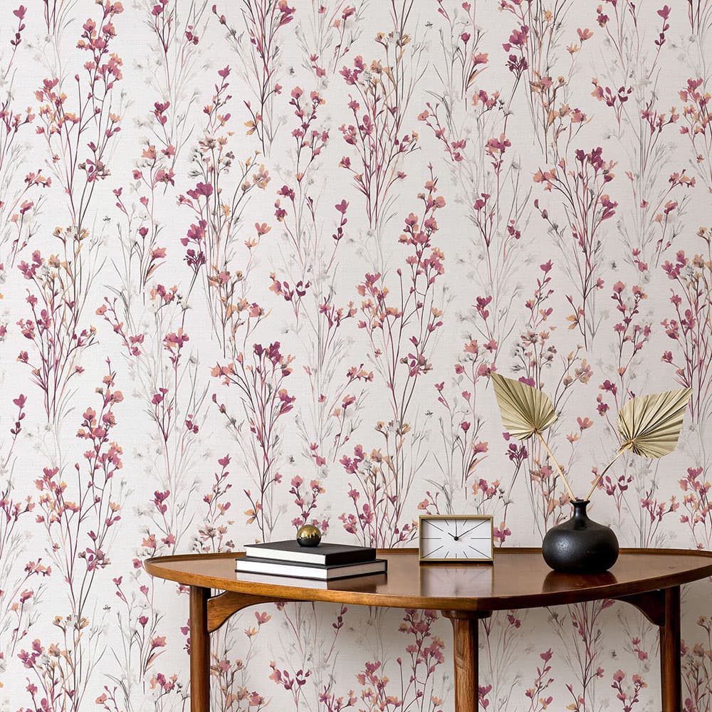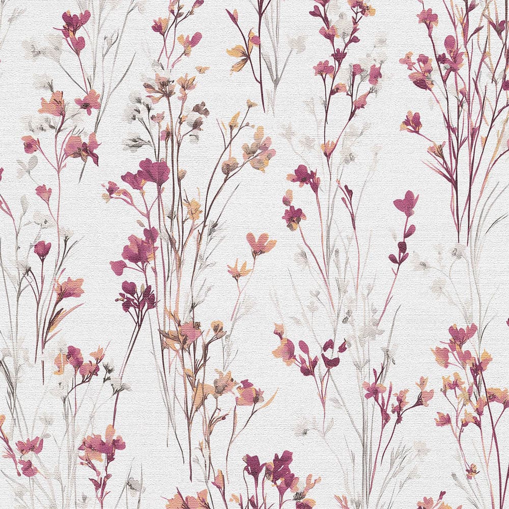 This wallpaper from the Forest Dreams collection by Erismann is inspired by the warm aesthetics of the Neo Nature trend and modern country style. It gives your rooms a noticeable depth and cosiness and has a soothing, stylish and sensual effect. Non-woven wallpaper 10561-22 features a floral motif with wildflowers in watercolour effect in shades of cream, purple and orange. Discover all wallpapers in this collection in our shop.