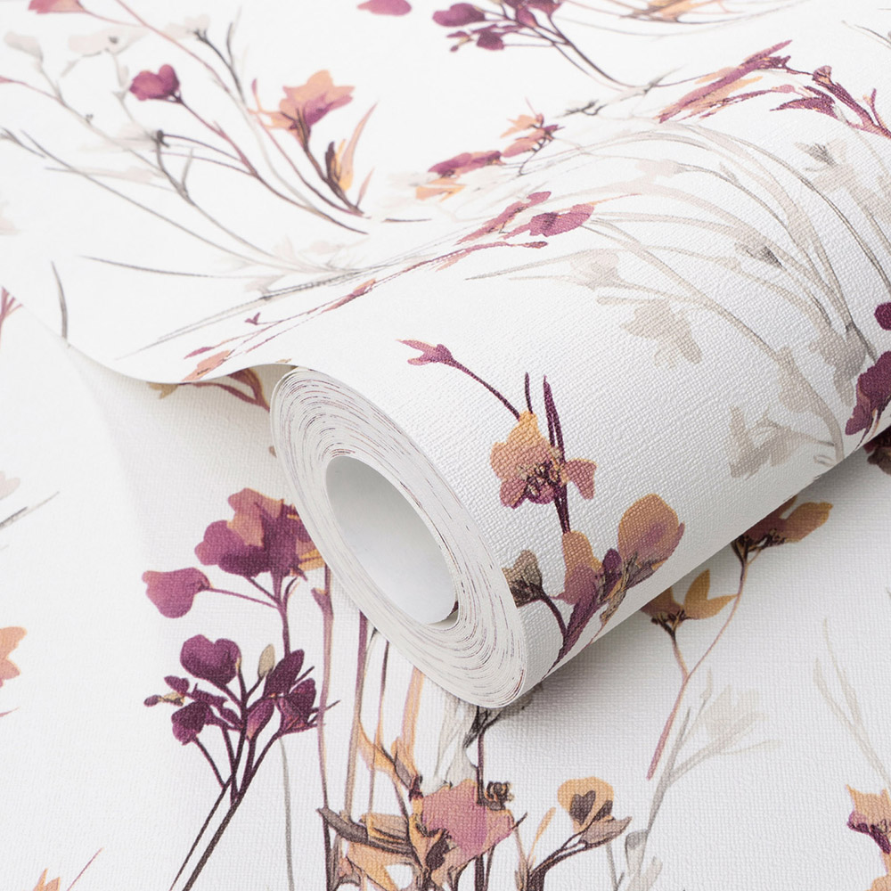 Non-woven Wallpaper Floral Cream Purple Orange 10561-22
