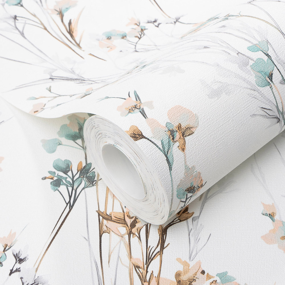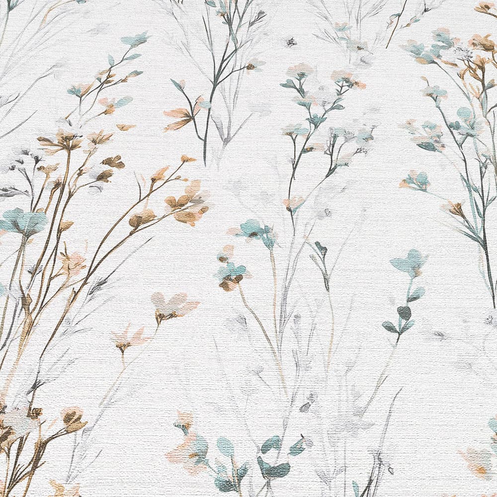 This wallpaper from the Forest Dreams collection by Erismann is inspired by the warm aesthetics of the Neo Nature trend and modern country style. It gives your rooms a noticeable depth and cosiness and has a soothing, stylish and sensual effect. Non-woven wallpaper 10561-35 features a floral motif with wildflowers in watercolour effect in shades of white, blue and beige. Discover all wallpapers in this collection in our shop.