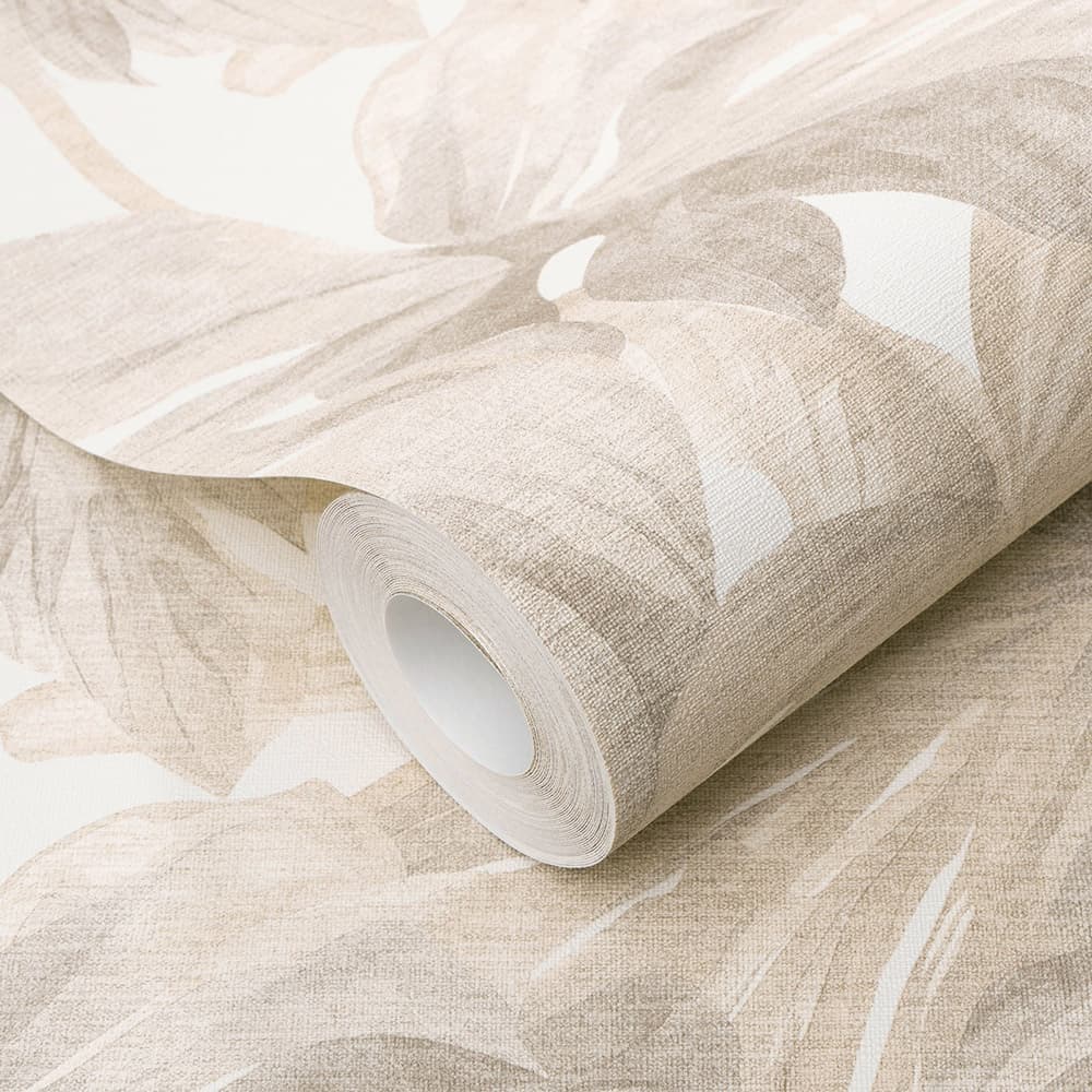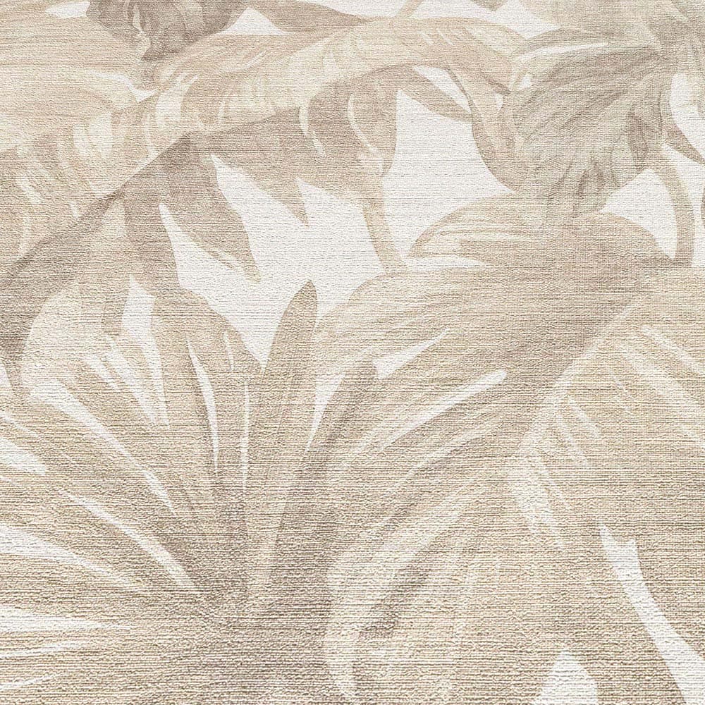 This wallpaper from the Forest Dreams collection by Erismann is inspired by the warm aesthetics of the Neo Nature trend and modern country style. It gives your rooms a noticeable depth and cosiness and has a soothing, stylish and sensual effect. The non-woven wallpaper 10558-02 features a tropical motif with leaves in shades of cream, beige and brown. Discover all wallpapers in this collection in our shop.