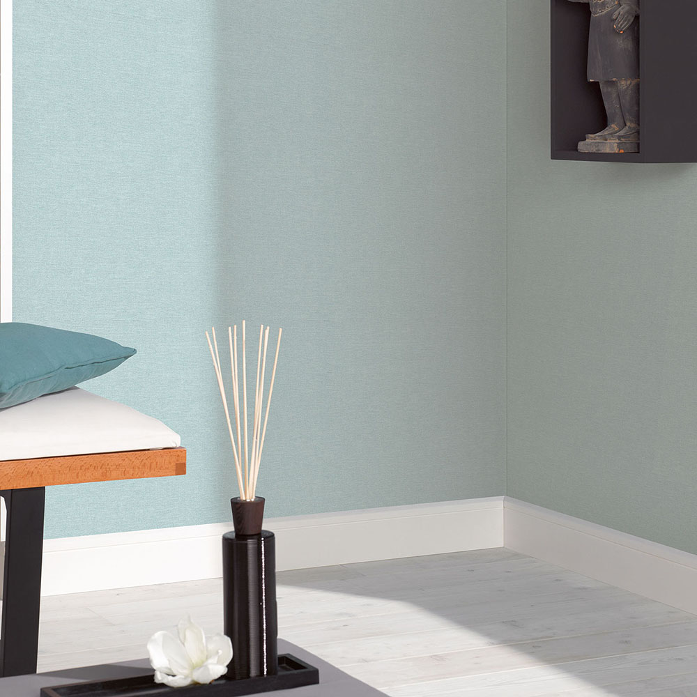 This wallpaper from the Forest Dreams collection by Erismann is inspired by the warm aesthetics of the Neo Nature trend and modern country style. It gives your rooms a noticeable depth and cosiness and has a soothing, stylish and sensual effect. The non-woven wallpaper 10563-43 is plain in textile look with subtle texture in shades of blue. Discover all wallpapers in this collection in our shop.