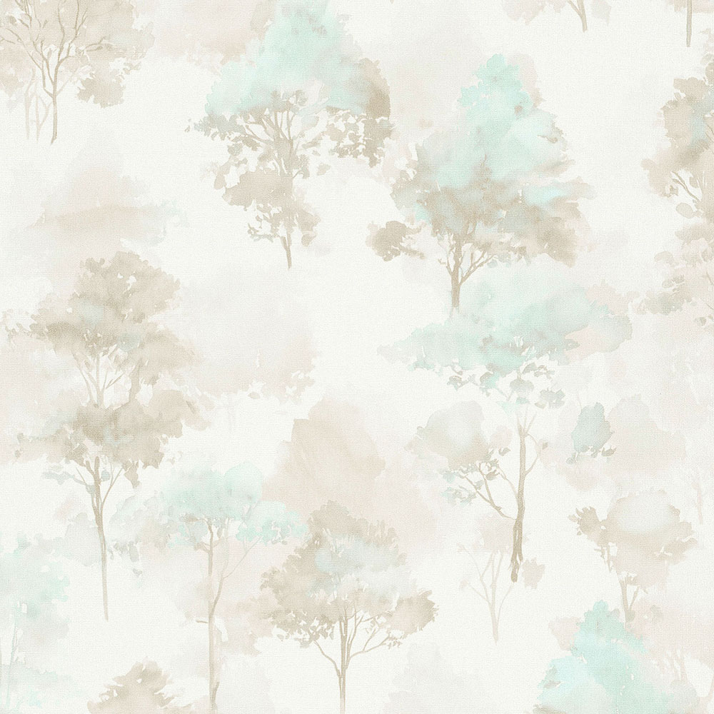 Non-woven Wallpaper Trees Forest Cream Brown Blue 10557-02