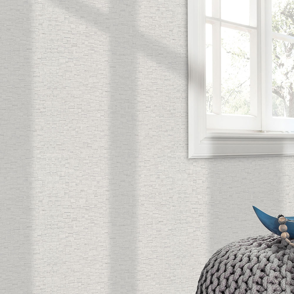 This wallpaper from the Forest Dreams collection by Erismann is inspired by the warm aesthetics of the Neo Nature trend and modern country style. It gives your rooms a noticeable depth and cosiness and has a soothing, stylish and sensual effect. The non-woven wallpaper 10562-31 has a graphic wood look reminiscent of a mosaic in cream and grey tones with a glitter effect. Discover all wallpapers in this collection in our shop.