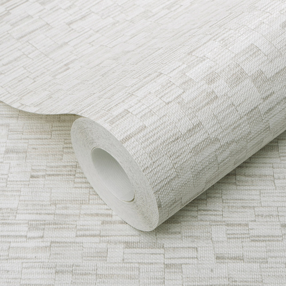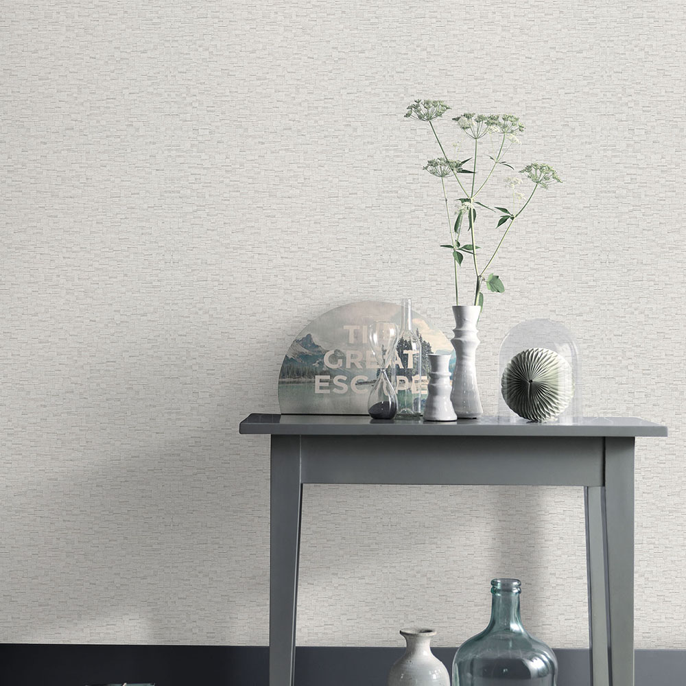 This wallpaper from the Forest Dreams collection by Erismann is inspired by the warm aesthetics of the Neo Nature trend and modern country style. It gives your rooms a noticeable depth and cosiness and has a soothing, stylish and sensual effect. The non-woven wallpaper 10562-38 has a graphic wood look reminiscent of a mosaic in cream and grey tones with a glitter effect. Discover all wallpapers in this collection in our shop.