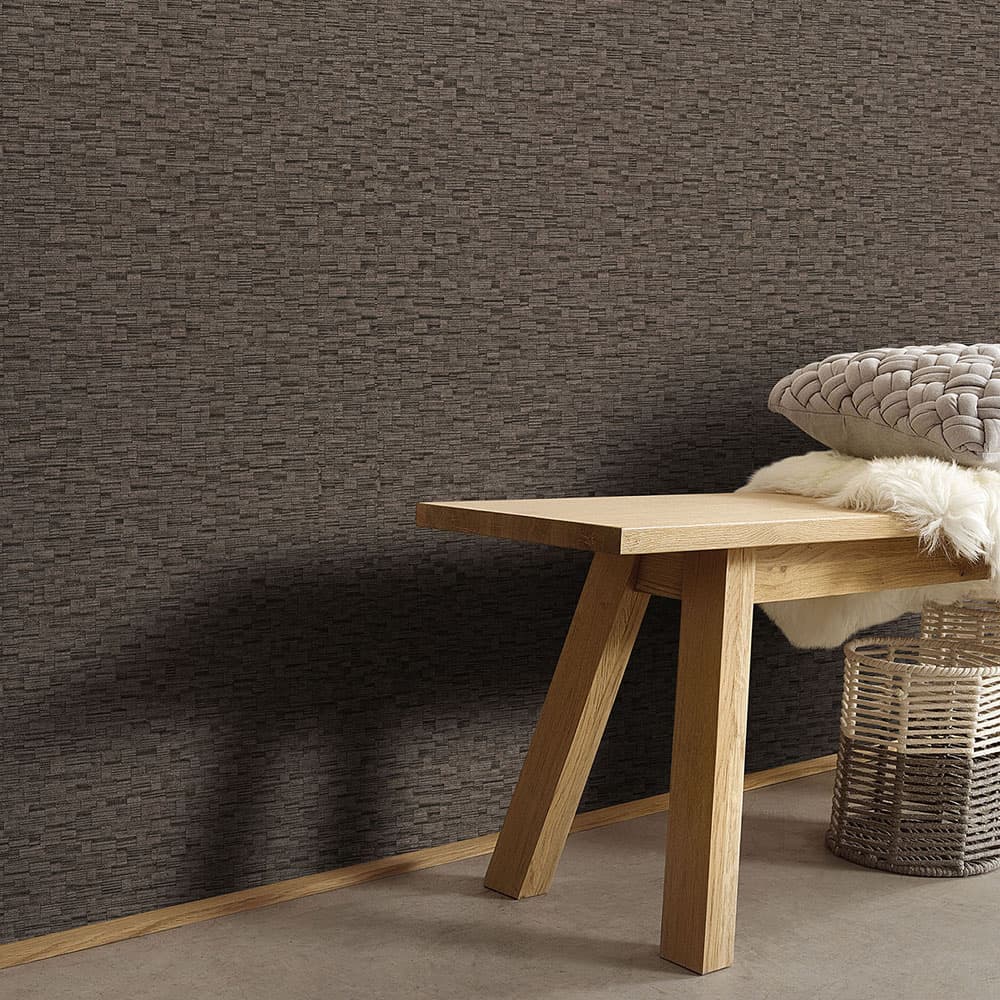 This wallpaper from the Forest Dreams collection by Erismann is inspired by the warm aesthetics of the Neo Nature trend and modern country style. It gives your rooms a noticeable depth and cosiness and has a soothing, stylish and sensual effect. The non-woven wallpaper 10562-11 has a graphic wood look reminiscent of a mosaic in brown tones with a metallic effect. Discover all wallpapers in this collection in our shop.