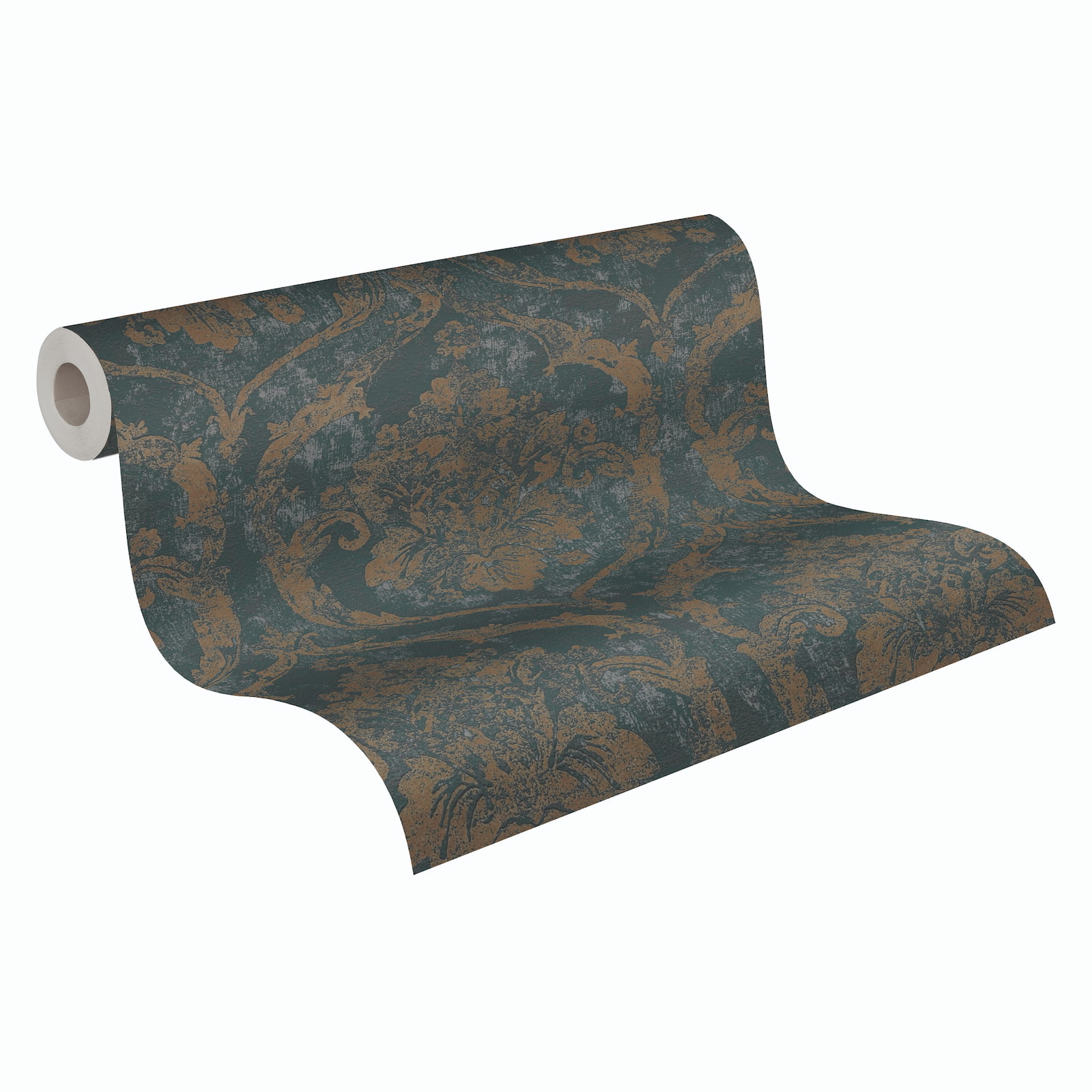 Non-woven wallpaper Baroque Petrol Gold Metallic 79019-2