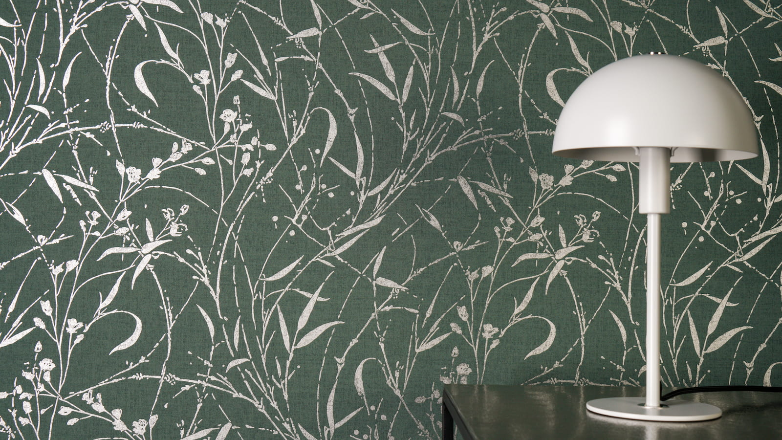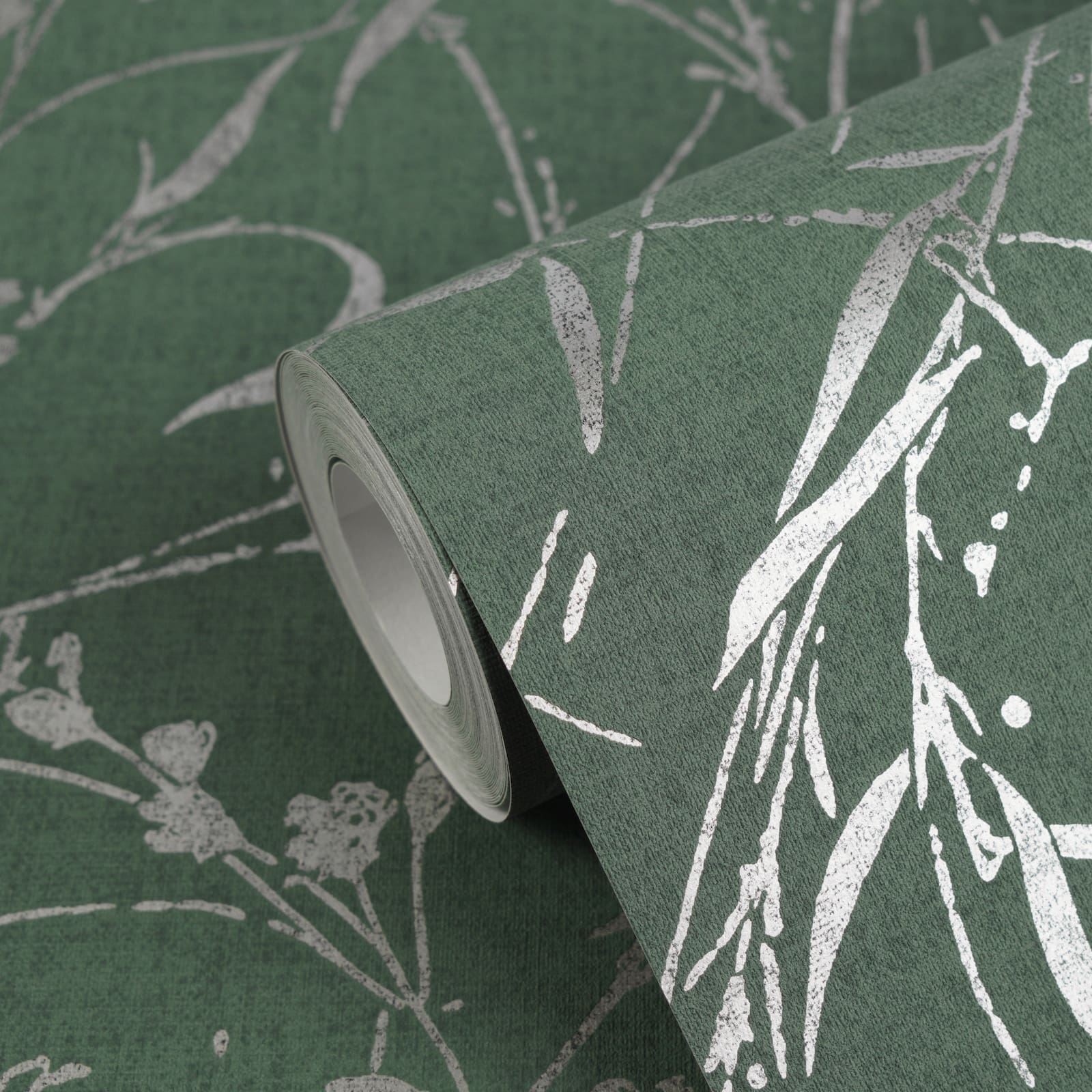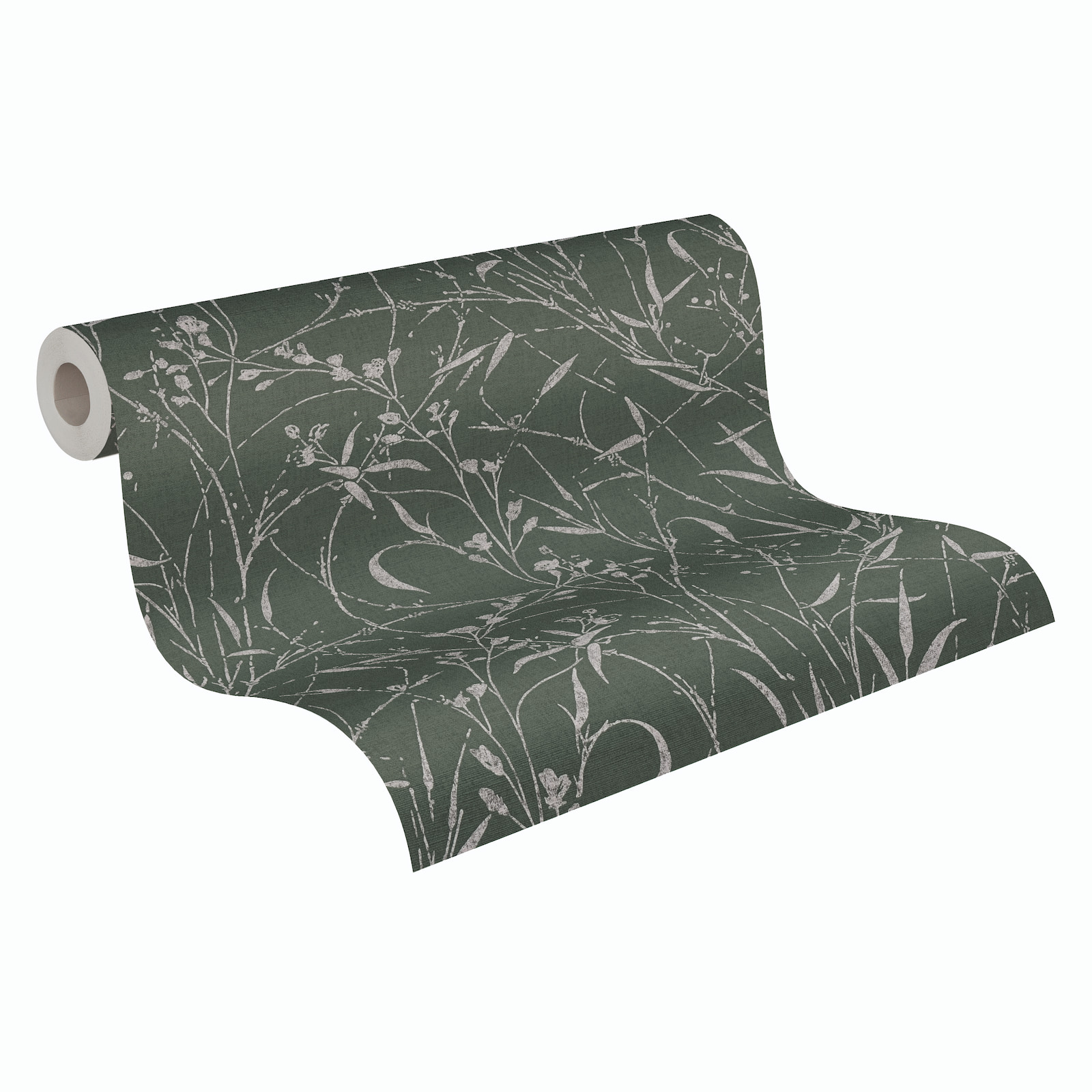 Non-woven wallpaper Floral Green Silver Metallic 79004-5