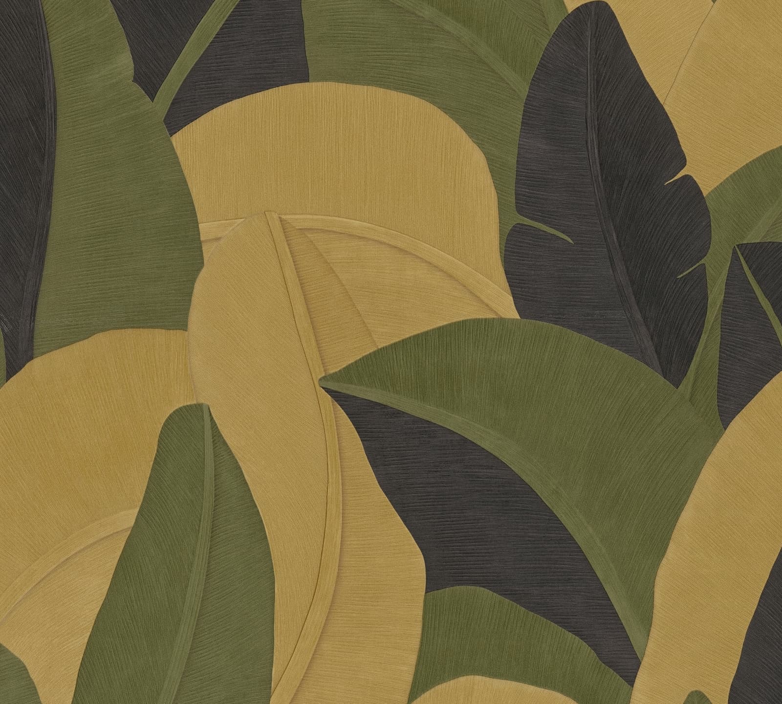 This wallpaper from the Metropolitan Stories - Vibes & Styles collection is for everyone who wants to not just live in their rooms, but truly arrive in them. It combines trend awareness, quality, and a welcoming atmosphere, making it perfect for modern living concepts. The non-woven wallpaper 79039-1 features a tropical leaf pattern in shades of green, yellow, and black. Discover the entire collection now in our shop.