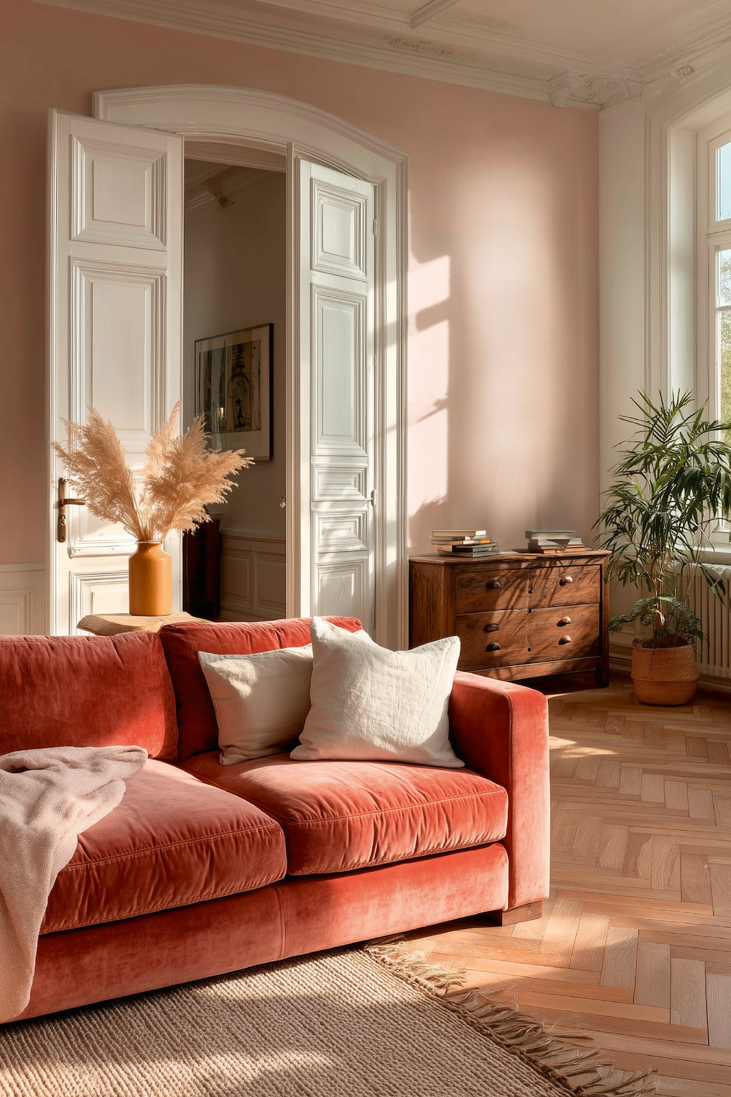 This wallpaper from the Metropolitan Stories - Vibes & Styles collection is for everyone who wants to not just live in their rooms, but truly arrive in their home. It combines trend awareness, quality, and a welcoming atmosphere, making it perfect for modern living concepts. The non-woven wallpaper 79202-2 is a solid color with a linen look and a textured surface in shades of pink. Discover the entire collection now in our shop.
