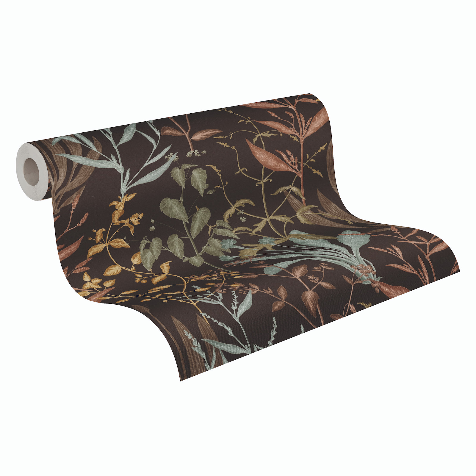 Non-woven wallpaper Tropical Black Green Brown 79009-4