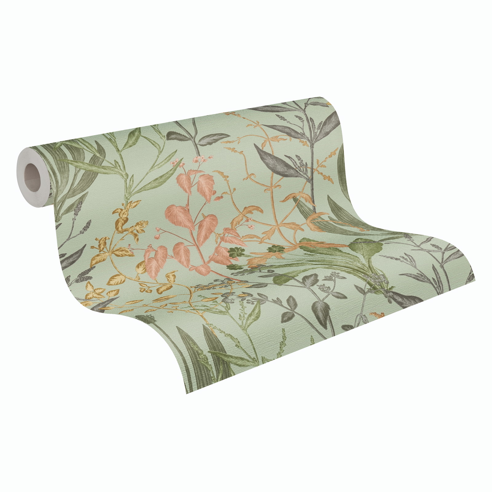 Non-woven wallpaper Tropical Green Orange Beige 79009-3