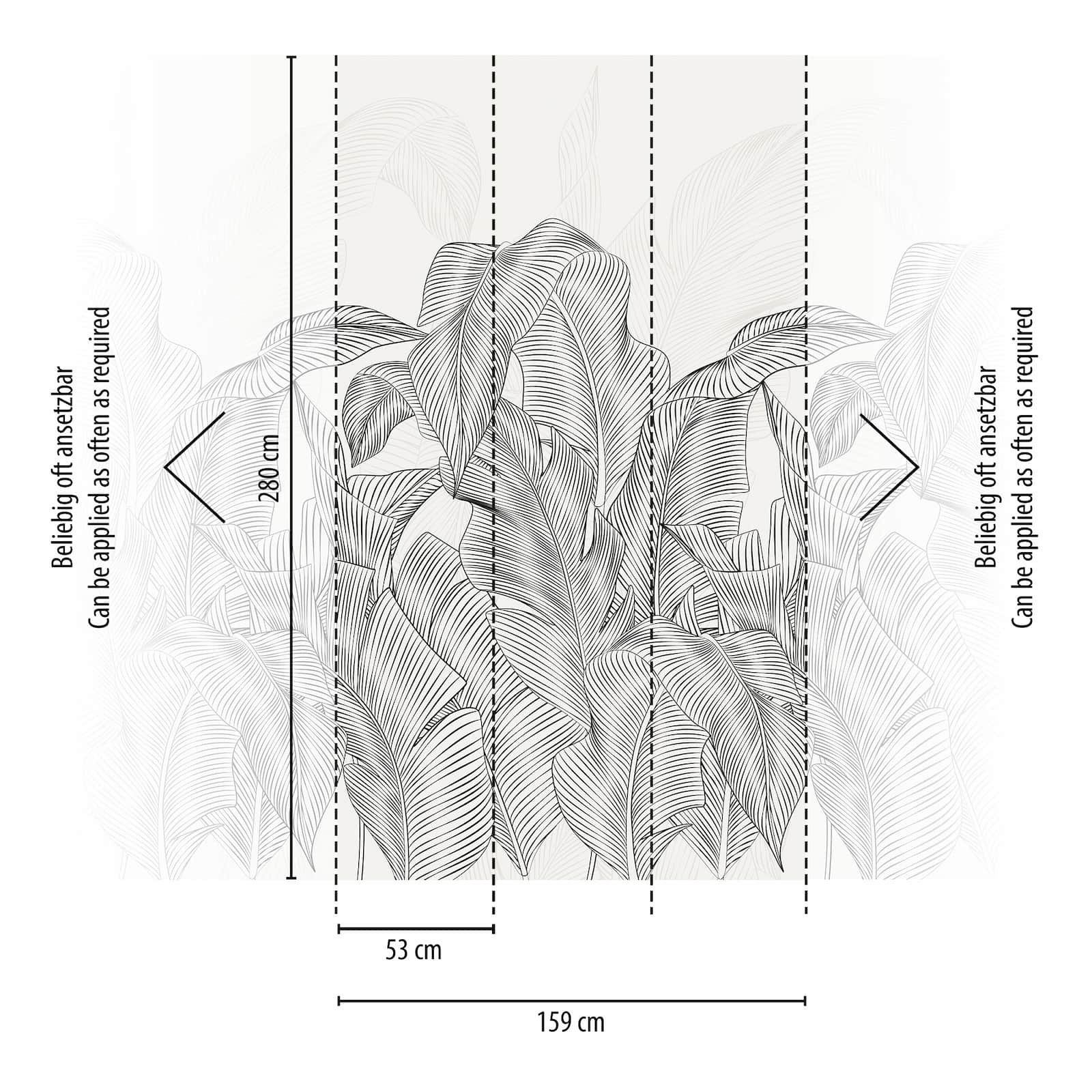 Photo wallpaper Leaves Tropical Grey Black 79217-1