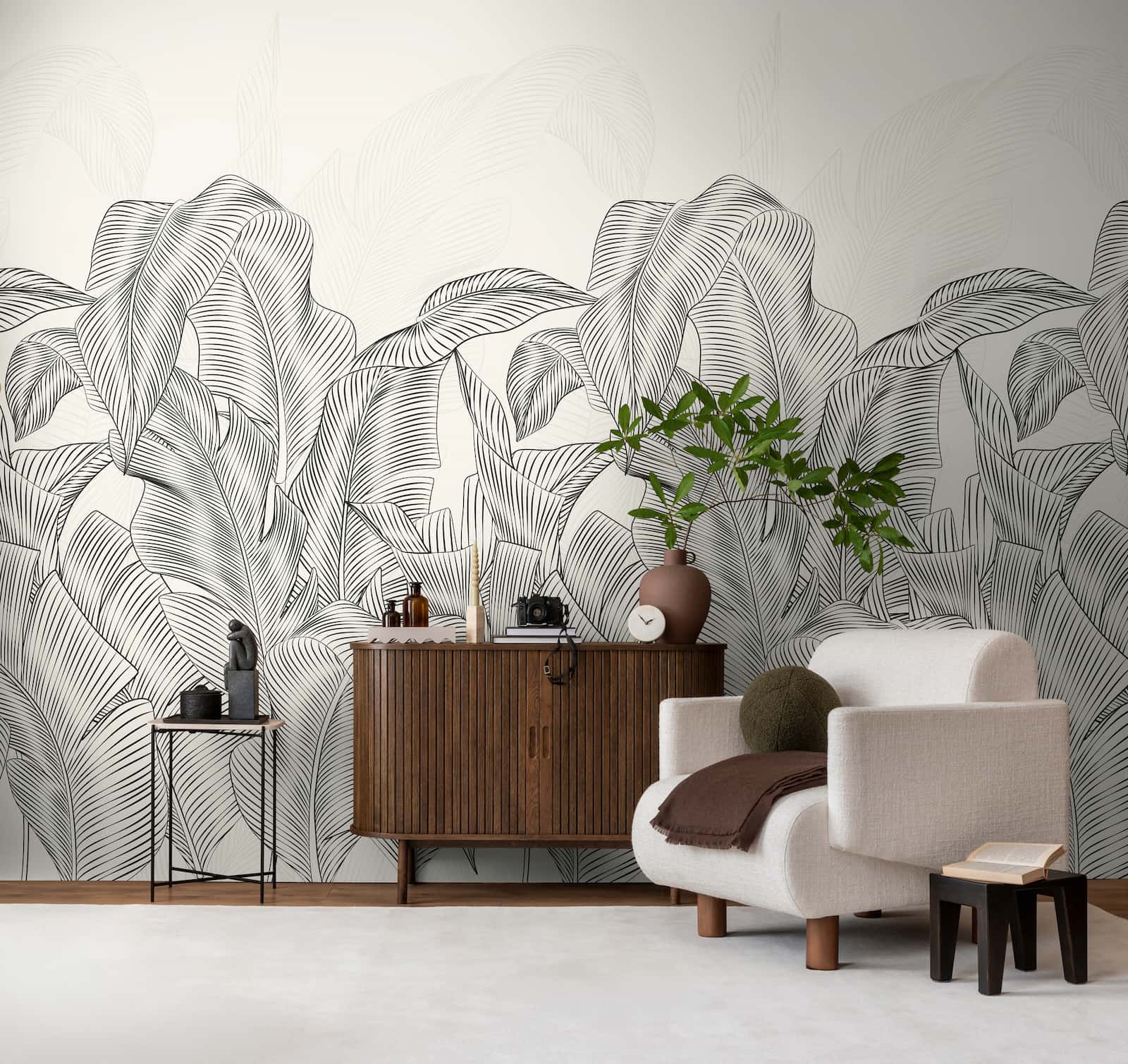 This wallpaper from the Metropolitan Stories - Vibes & Styles collection is for everyone who wants to not just live in their rooms, but truly arrive in them. It combines trend awareness, quality, and a welcoming atmosphere, making it perfect for modern living concepts. The non-woven wallpaper 79217-1 is a three-panel design featuring a tropical motif with palm leaves in shades of gray and black. Discover the entire collection now in our shop.
