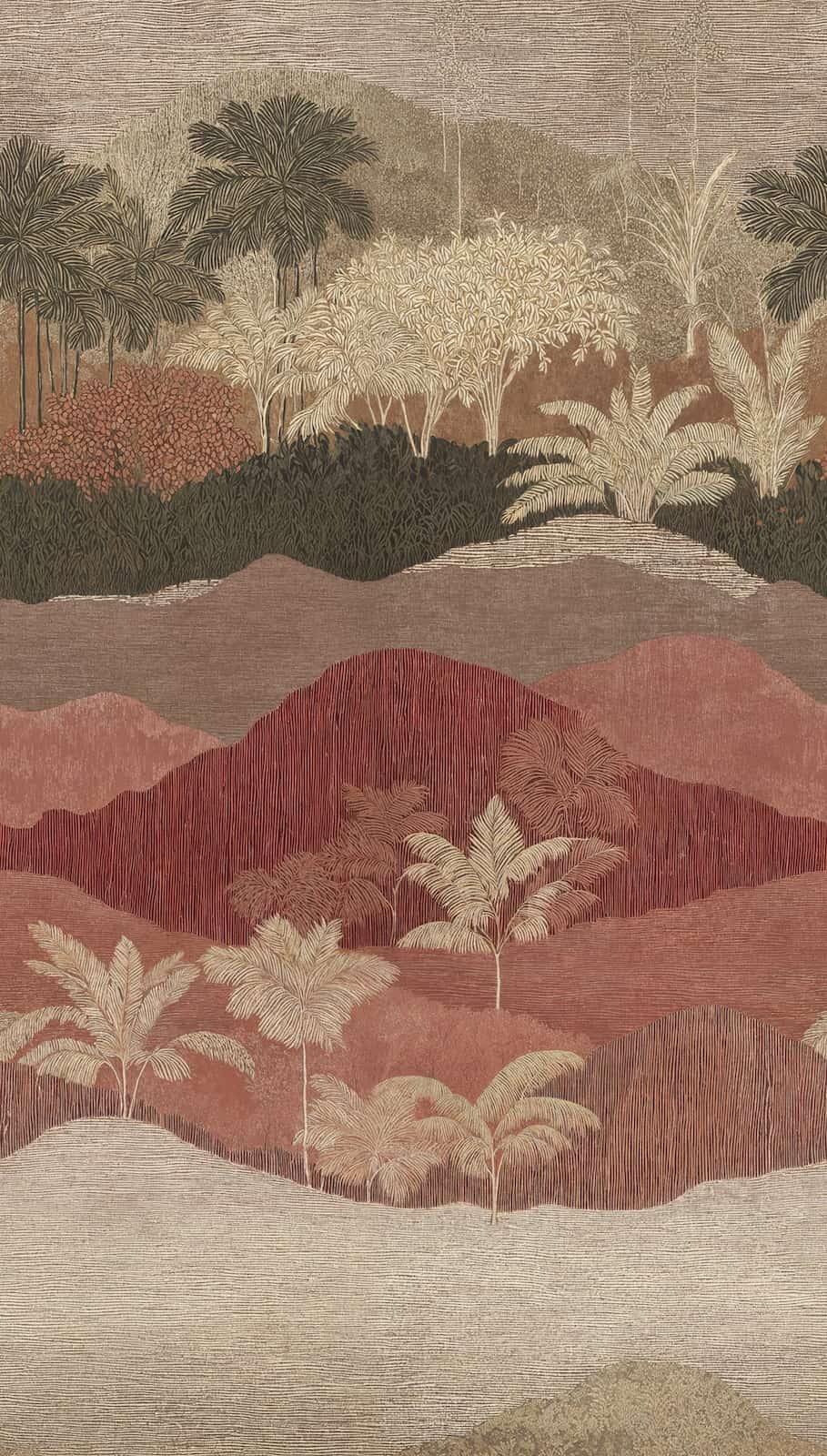 Tropical Landscape Photo Wallpaper Brown Cream Red 79216-8