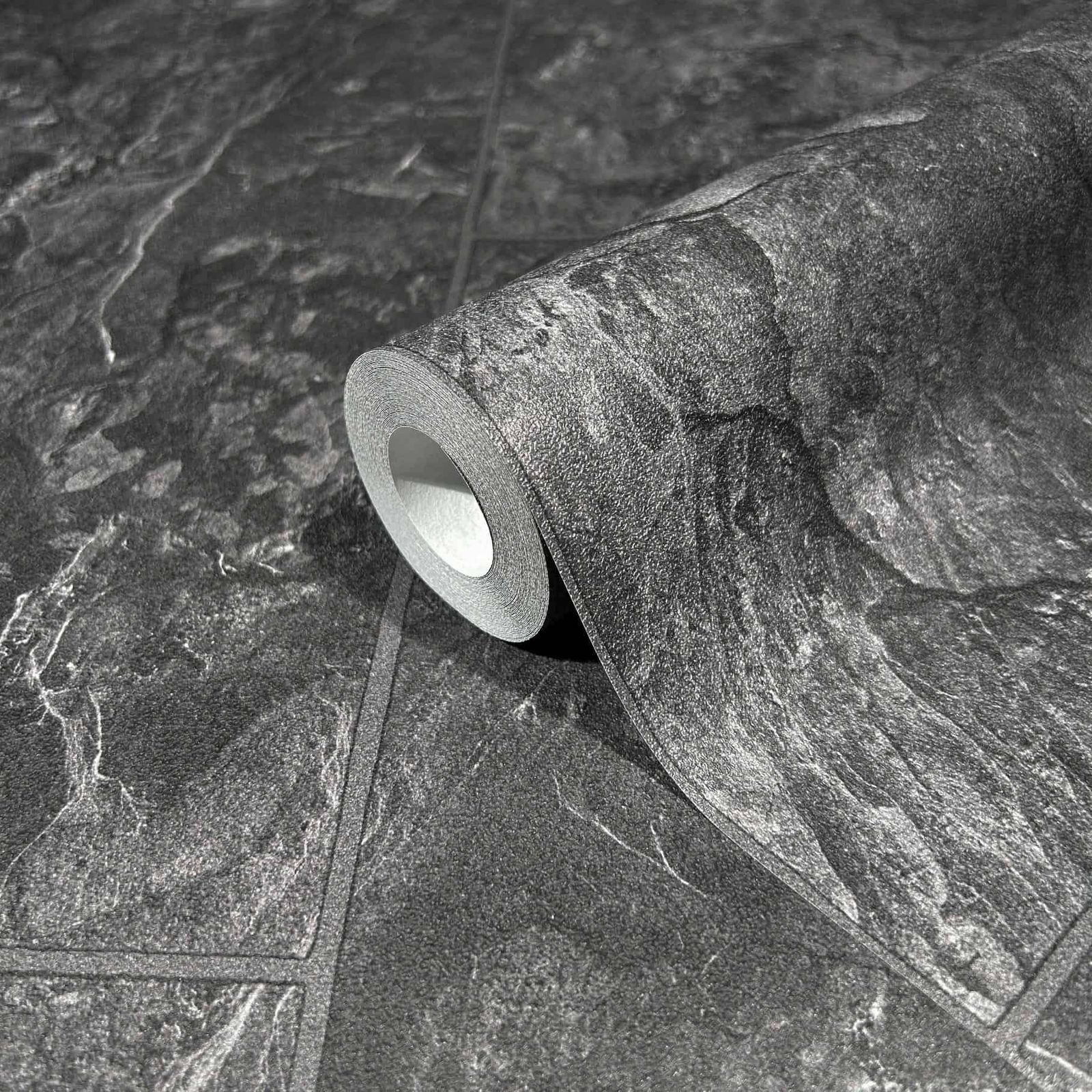Non-woven wallpaper tile motif used look black grey 45765