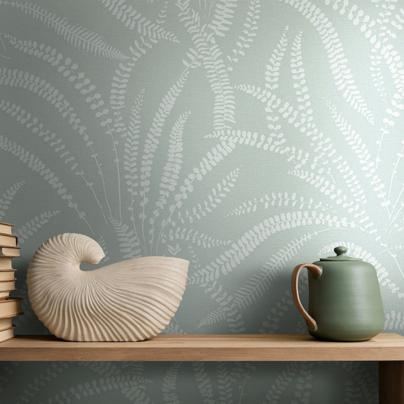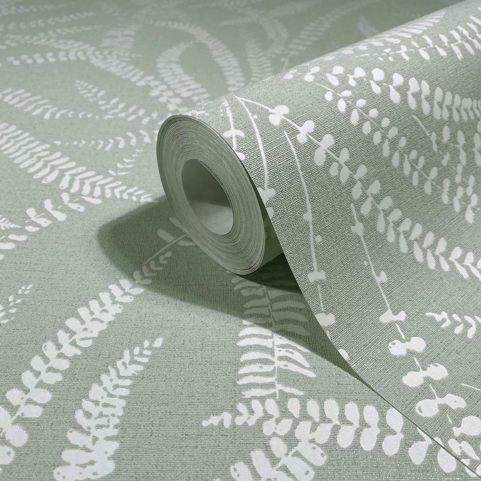 Non-woven Wallpaper Floral Grasses Skandi Green Cream 82505