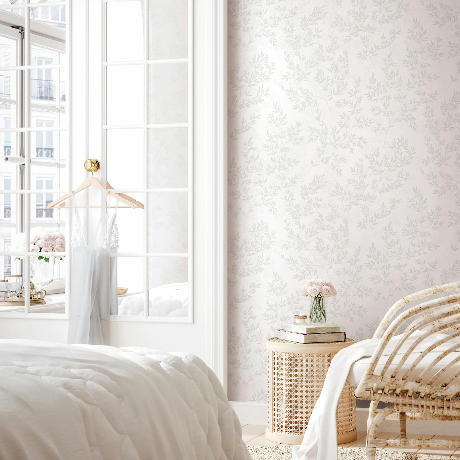 Non-woven Wallpaper Floral Leaves Twigs Cream Green 89029