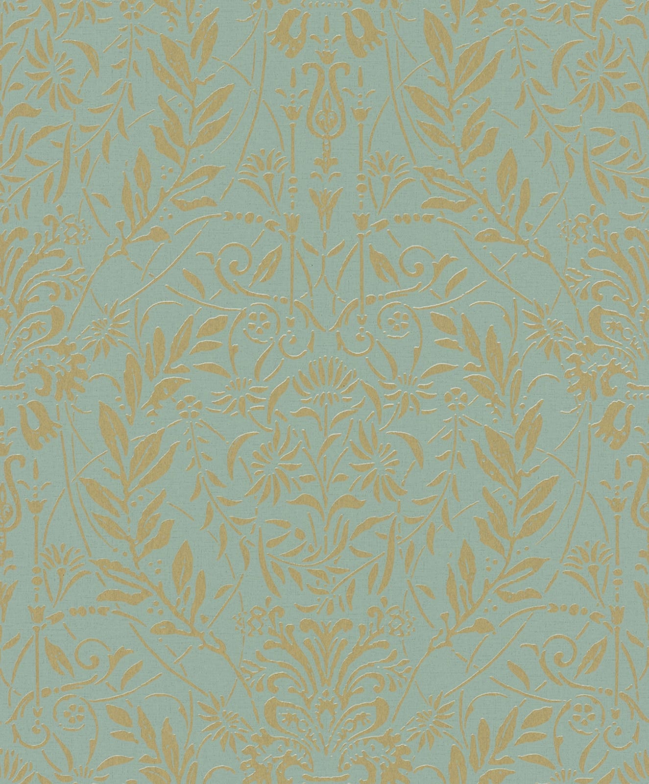 Non-woven Wallpaper Ornaments Green Gold Metallic 82510