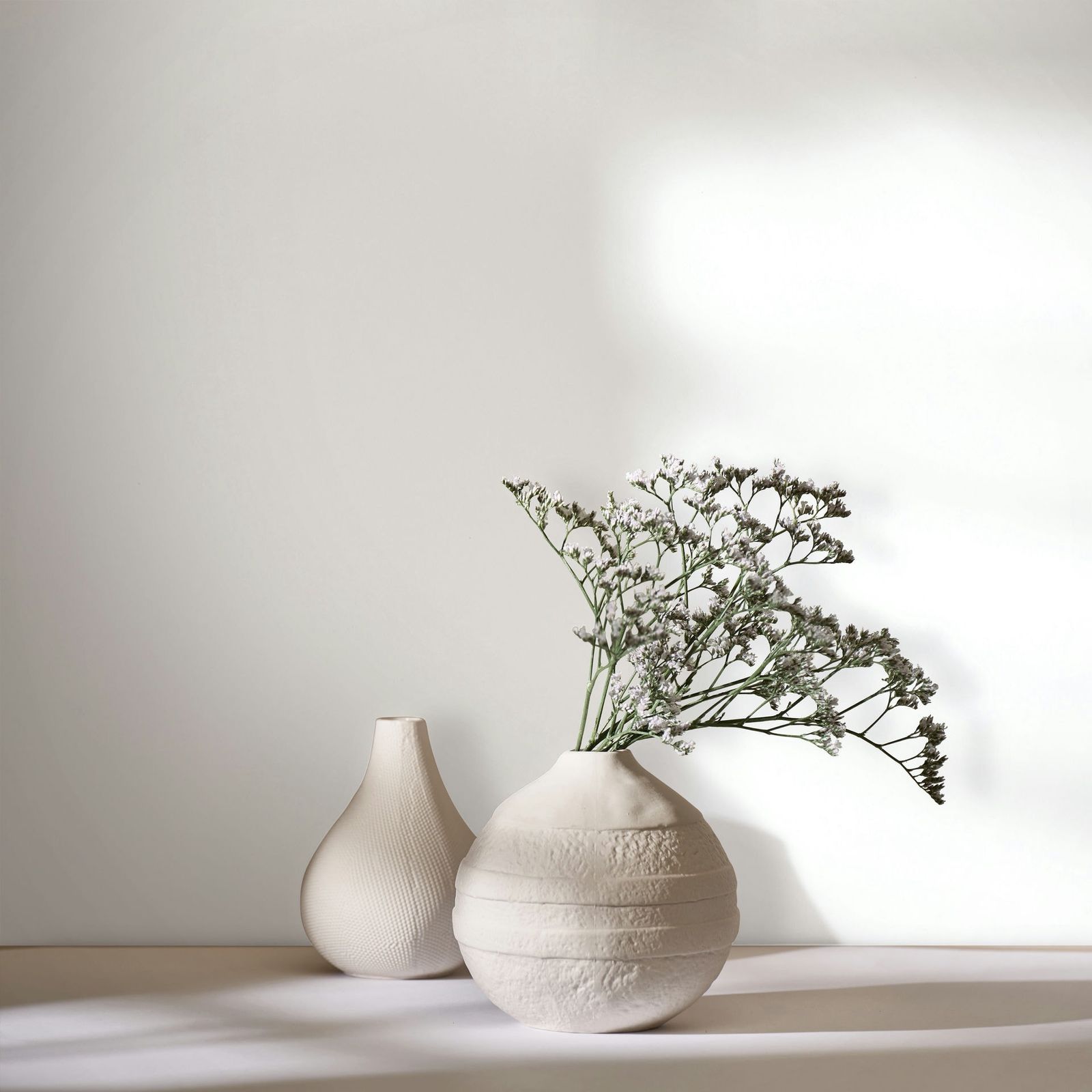 Let yourself be enchanted by a play of light, texture and gentle movement with this wallpaper from the collection Oriana by Novamur. It pays homage to the beauty of nature and the art of living and gives your rooms a magical atmosphere. The non-woven wallpaper 82555 is plain with an abstract texture of short lines in white. Discover the entire collection now in our shop.