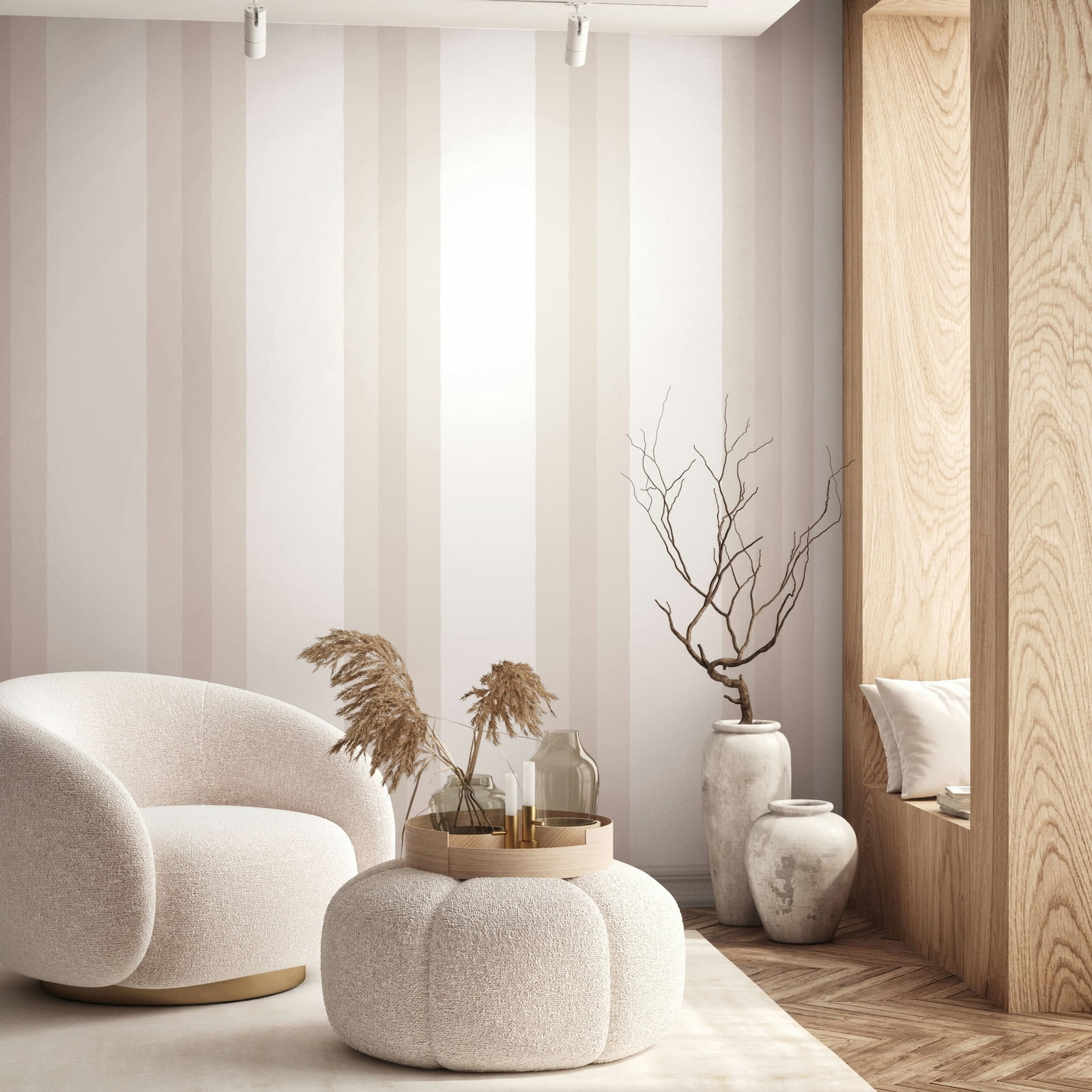 Non-woven Wallpaper Stripe Pattern Modern Cream Beige 82564