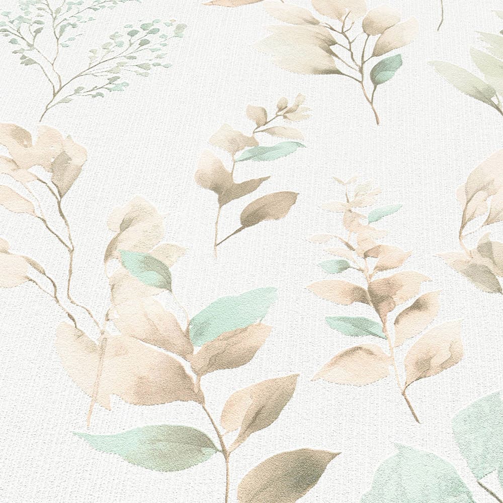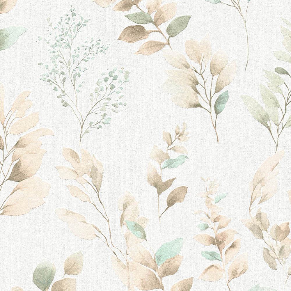 This wallpaper from the spring special edition Moments26 by star designer Guido Maria Kretschmer harmoniously blends naturalness, texture, and style. It offers stylish options for anyone who wants to create rooms with character. The non-woven wallpaper 10579-23 features a floral leaf pattern in a watercolor style with white, orange, and green tones. Discover other non-woven wallpapers by Guido Maria Kretschmer in our shop.