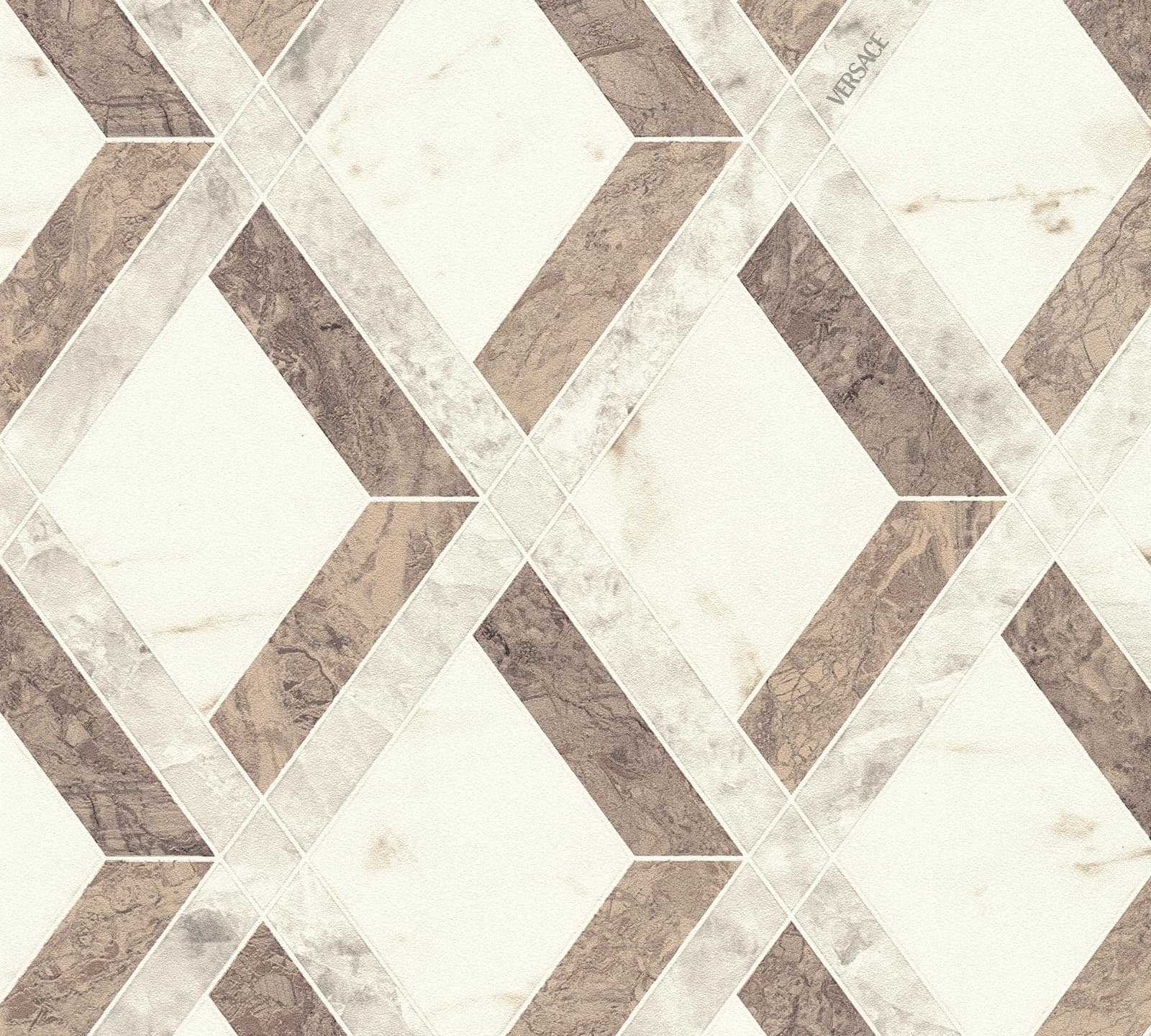 Versace wallpaper diamond pattern marble brown grey 79133-4