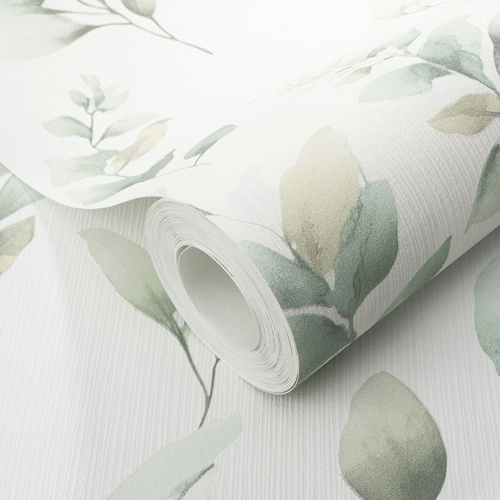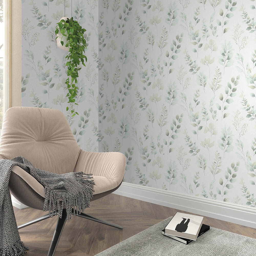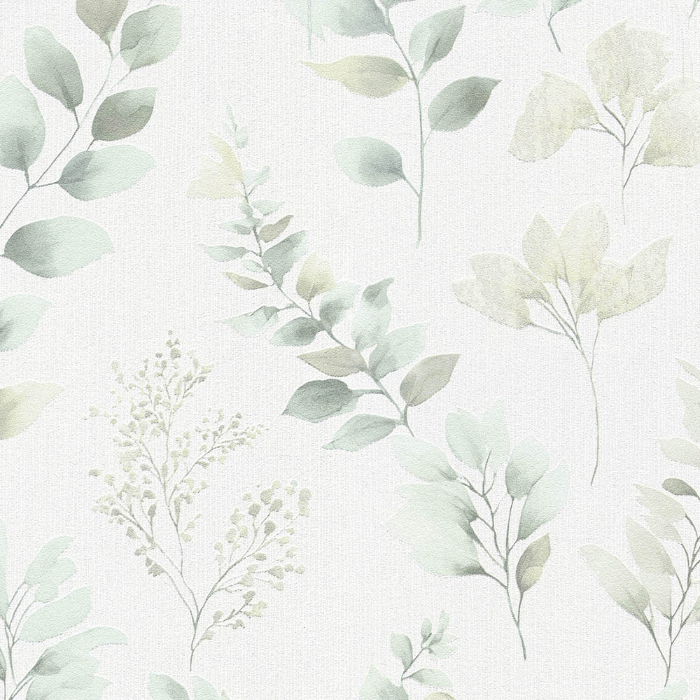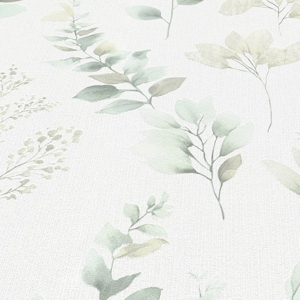 This wallpaper from the spring special edition Moments26 by star designer Guido Maria Kretschmer harmoniously blends naturalness, texture, and style. It offers stylish options for anyone who wants to create rooms with character. The non-woven wallpaper 10579-07 features a floral leaf pattern in a watercolor style with white, green, and blue tones. Discover other non-woven wallpapers by Guido Maria Kretschmer in our shop.