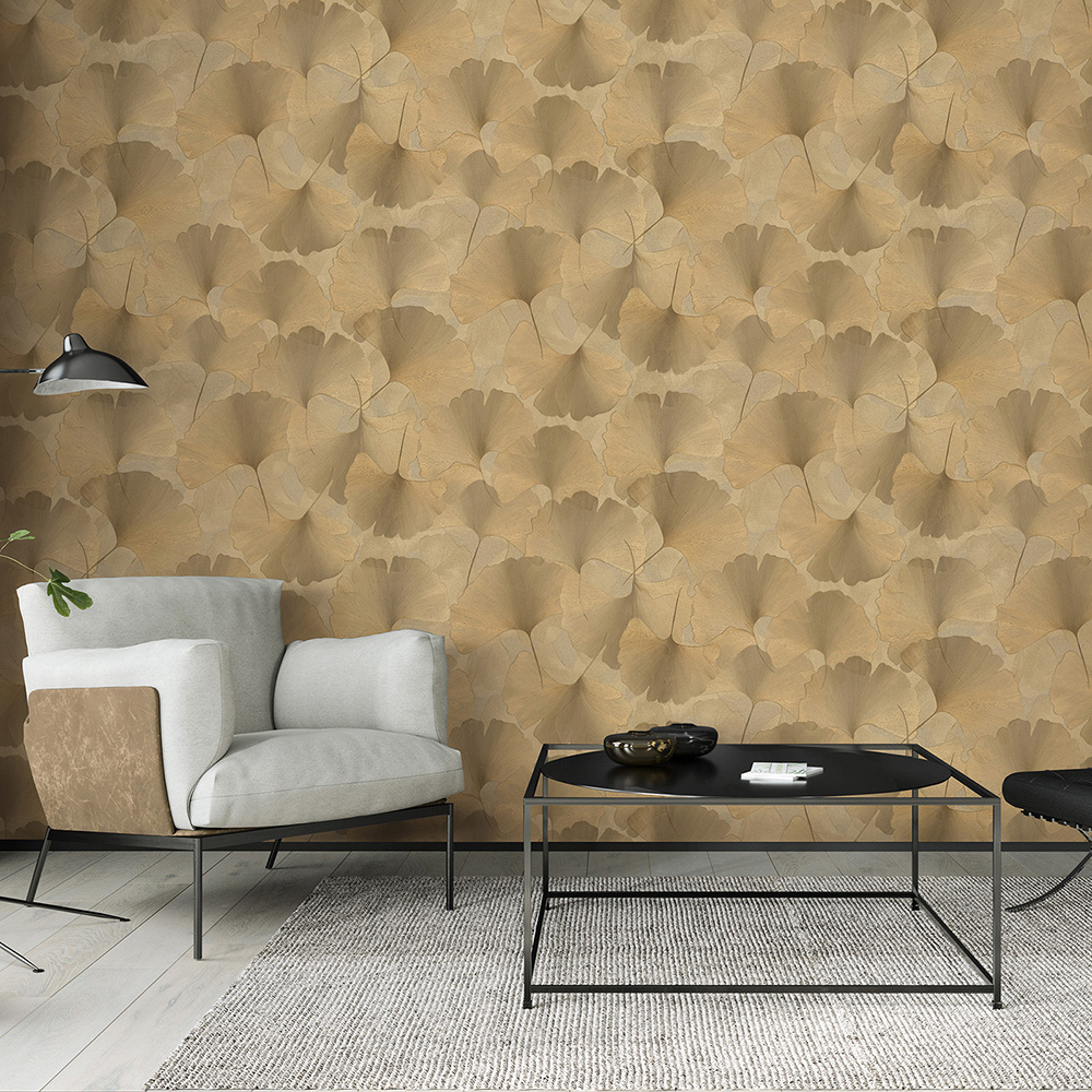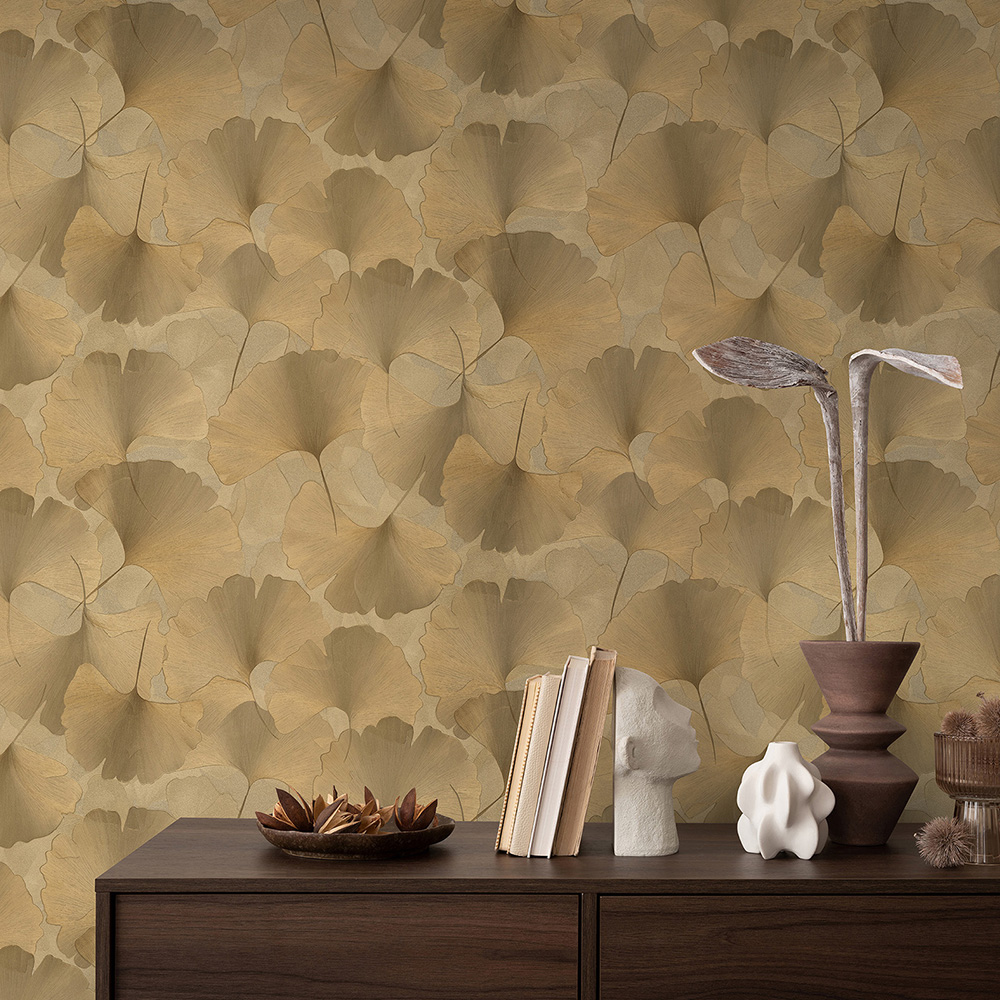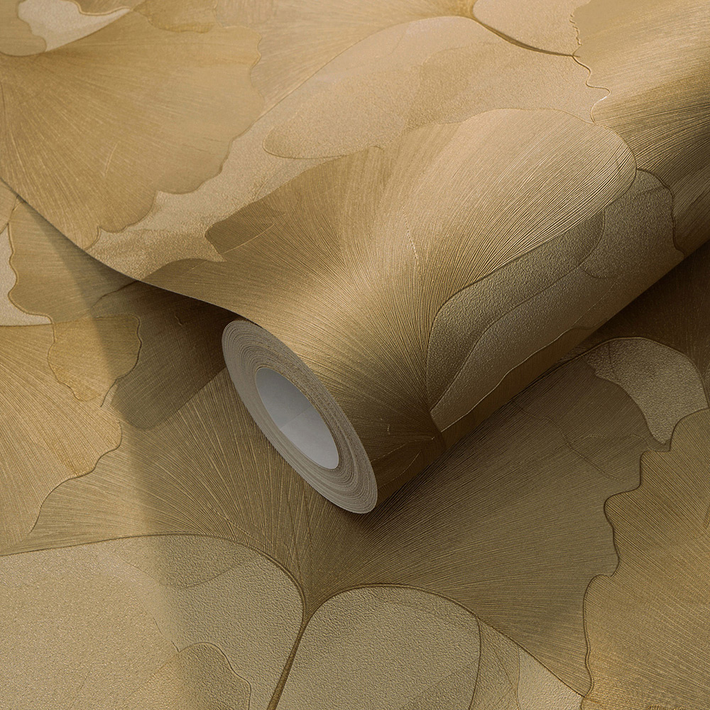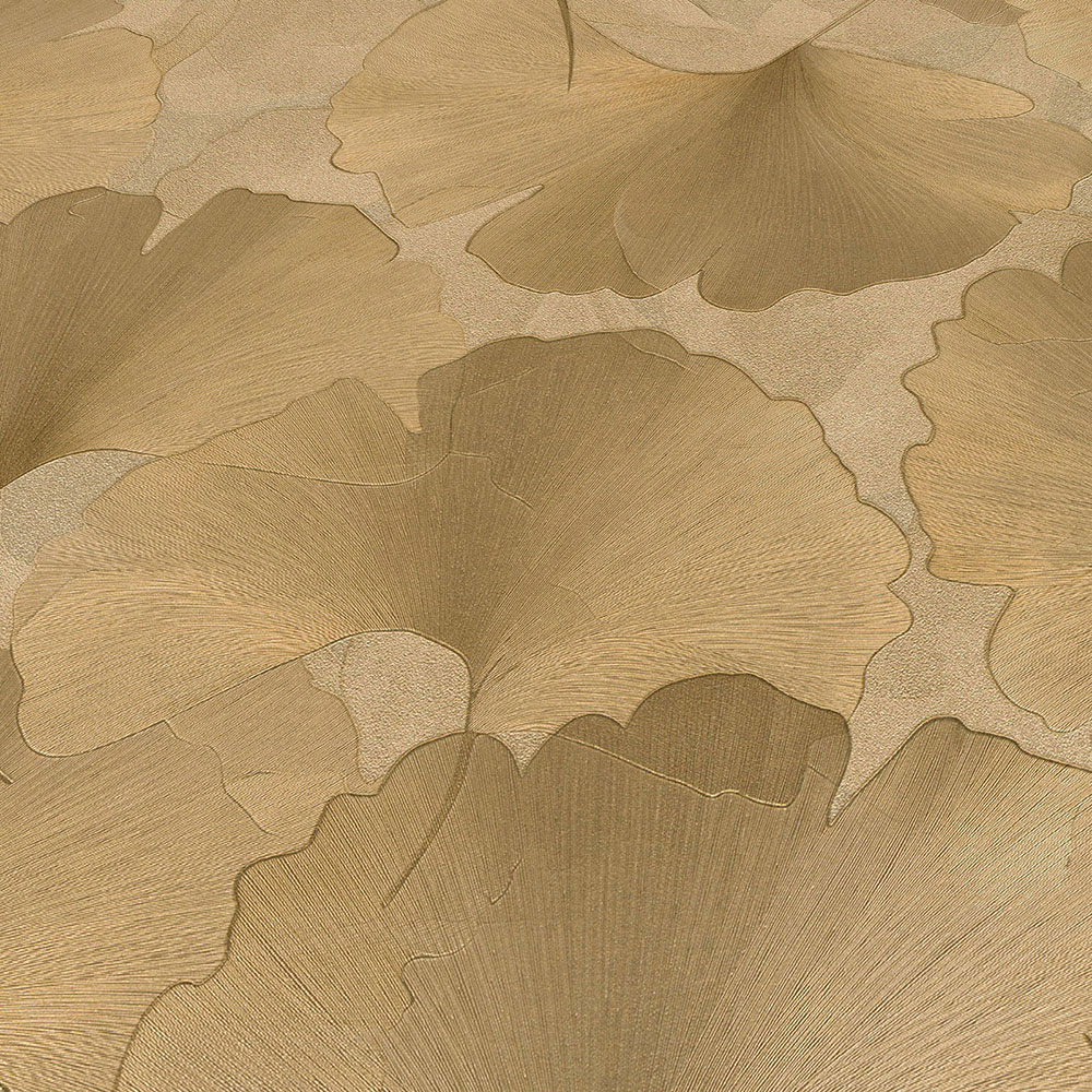 With this wallpaper from the "Elysium" collection by Erismann, you can stylishly design your rooms and turn them into a visual highlight. Timeless elegance meets modern extravagance, transforming every wall into a true eye-catcher. The non-woven wallpaper 10470-30 features a floral motif with ginkgo leaves in gold with a metallic effect. Discover the entire collection now in our shop.