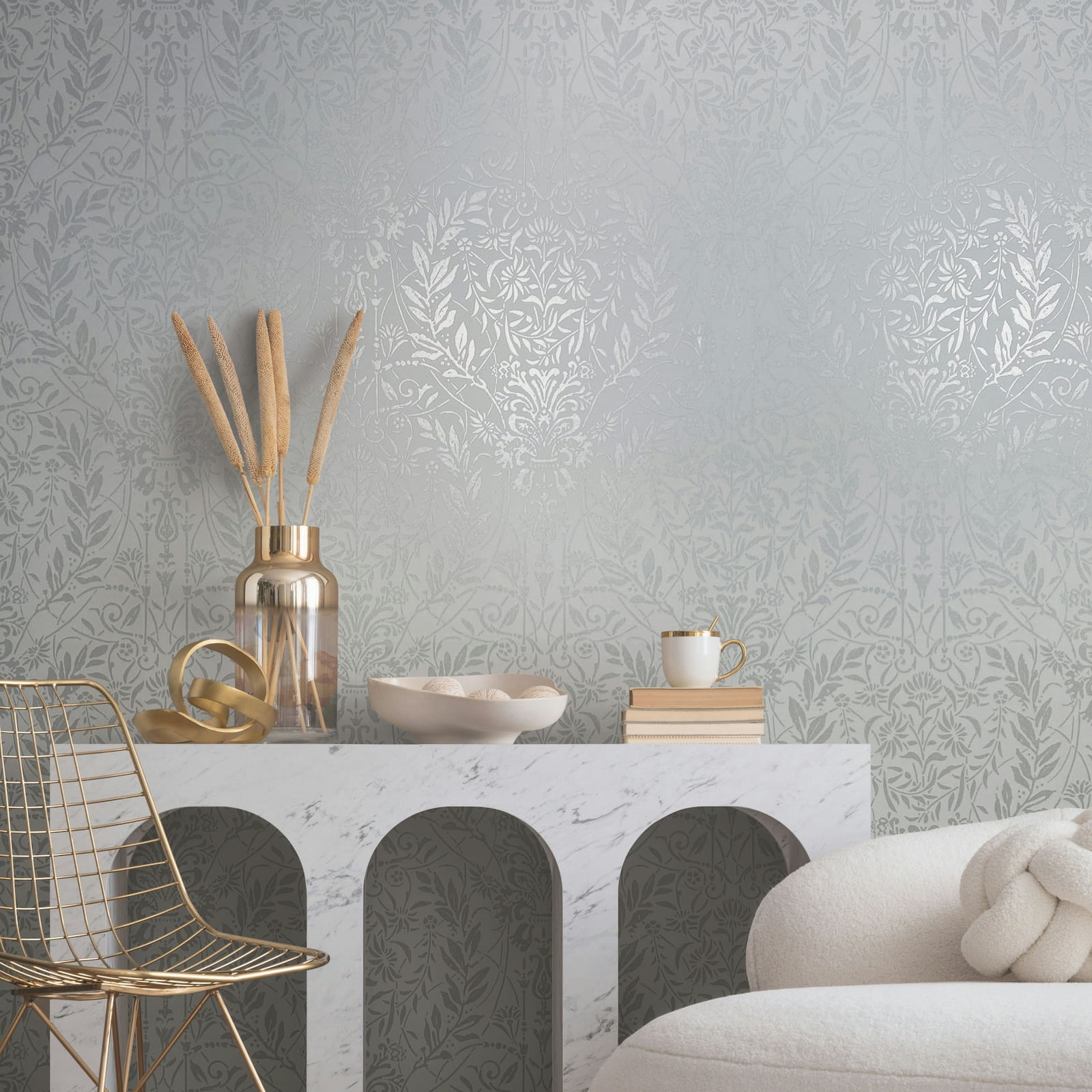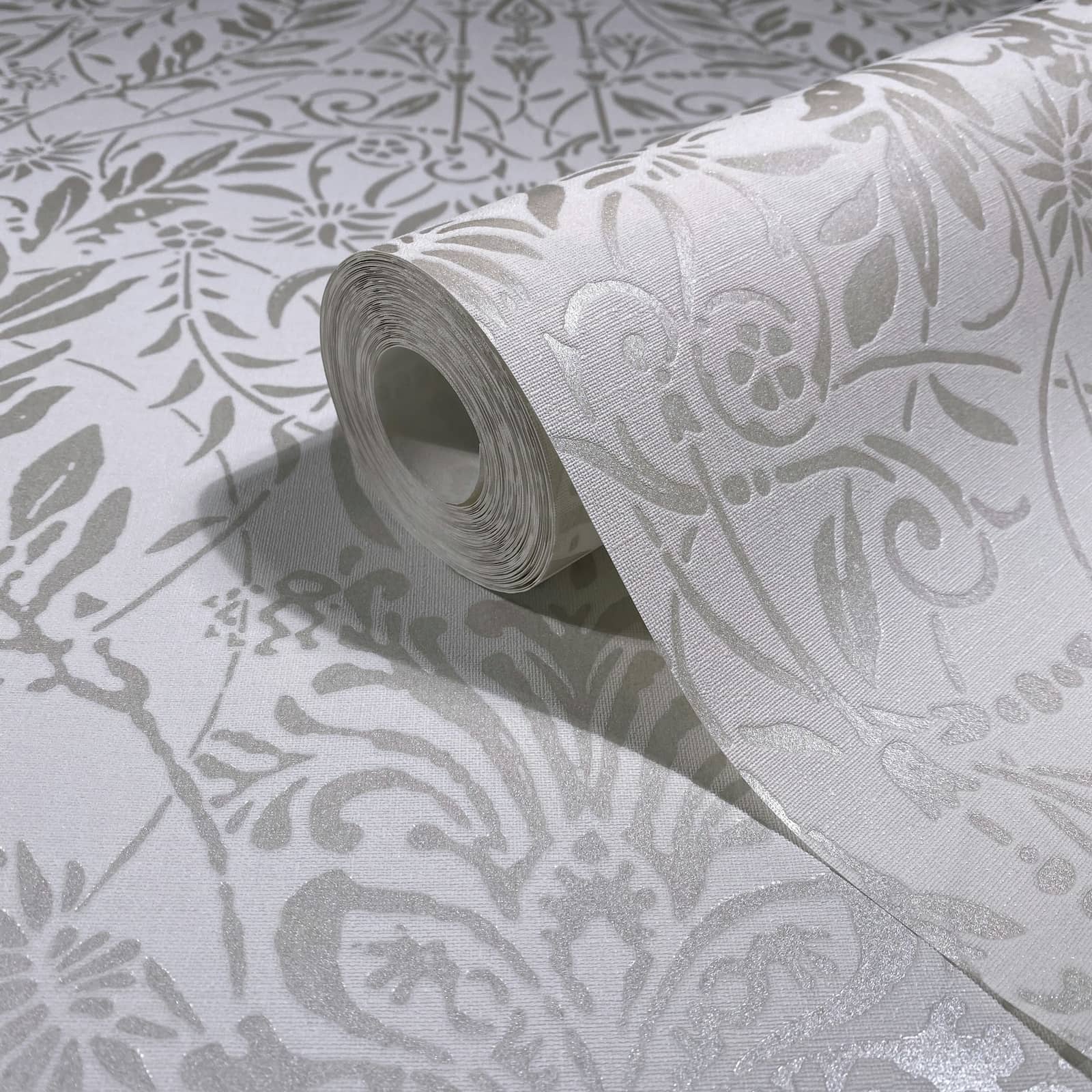 Non-woven Wallpaper Ornaments Grey Silver Metallic 82511