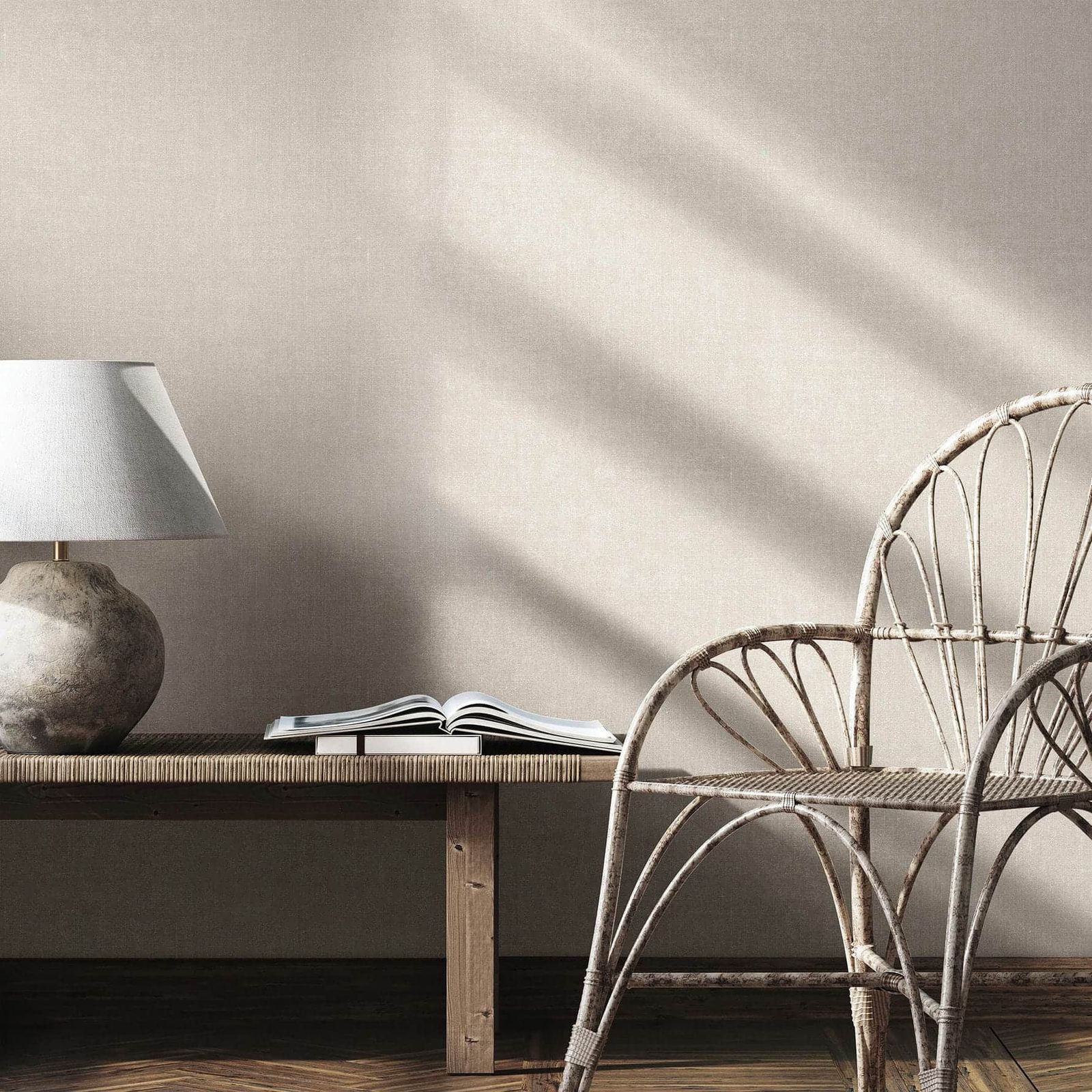 With this wallpaper from the Struktura collection by Marburg, you can create a calming, harmonious atmosphere in your home. Its timeless elegance blends seamlessly into a variety of interior design styles, lending a feeling of grace and tranquility. The non-woven wallpaper 45778 is a plain with a textile look in beige and grey tones. Discover the entire collection now in our shop.