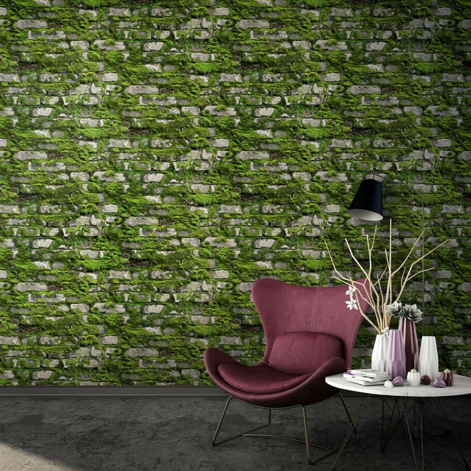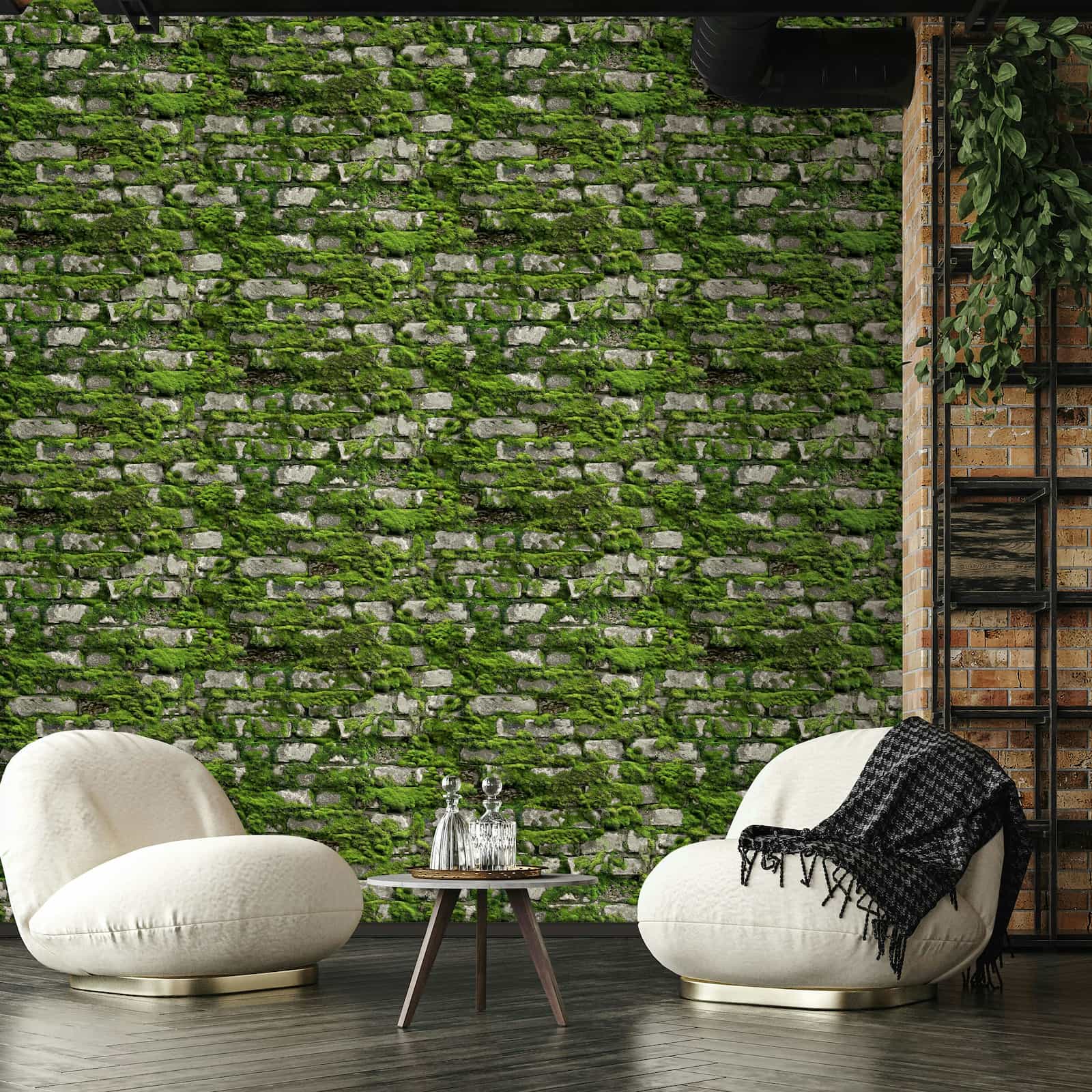 With this wallpaper from Marburg's Struktura collection, you can create a calming, harmonious atmosphere in your home. Its timeless elegance blends seamlessly into a variety of interior design styles, lending a sense of grace and tranquility. The non-woven wallpaper 45731 features a brick wall with moss in a 3D effect, rendered in shades of green and grey. Discover the entire collection now in our shop.