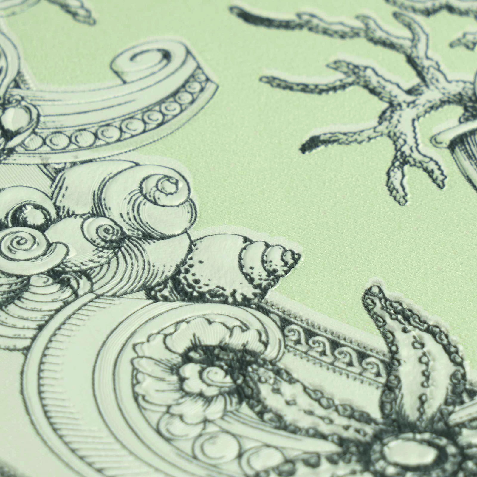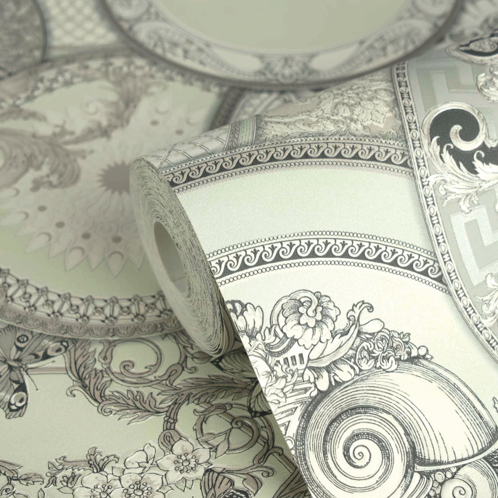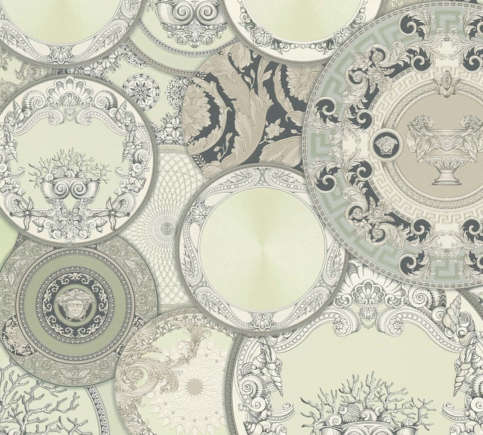 This elegant wallpaper from AS Creation's sixth wallpaper collection in collaboration with Versace opens a new chapter in luxurious wall decoration. Inspired by the DNA of the Versace fashion house, it is interpreted in a contemporary design language. The non-woven wallpaper 79136-2 features a baroque motif with large-scale ornaments that resemble elegant plates in shades of green with a metallic, mother-of-pearl effect. Discover the complete collection in our shop and bring a touch of luxury into your home.