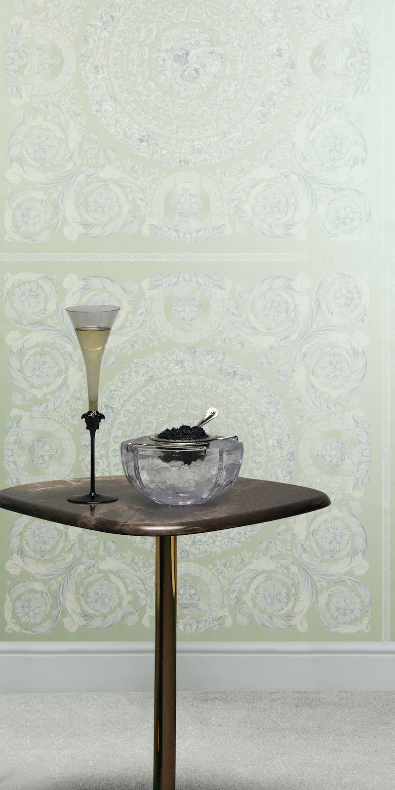 This elegant wallpaper from AS Creation's sixth wallpaper collection in collaboration with Versace opens a new chapter in luxurious wall decoration. Inspired by the DNA of the Versace fashion house, it is interpreted in a contemporary design language. The non-woven wallpaper 79134-3 features a floral baroque motif in a tile-effect finish in shades of green and white with a glossy effect. Discover the complete collection in our shop and bring a touch of luxury into your home.