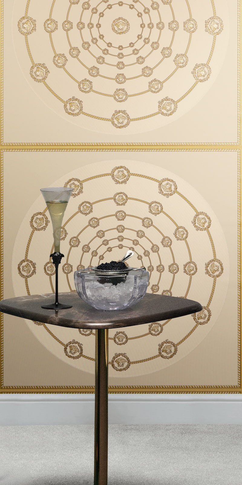 This elegant wallpaper from AS Creation's sixth wallpaper collection in collaboration with Versace opens a new chapter in luxurious wall decoration. Inspired by the DNA of the Versace fashion house, it is interpreted in a contemporary design language. The non-woven wallpaper 79175-3 features a graphic motif with circles and the Medusa emblem in beige tones with a metallic effect in gold and beige. Discover the complete collection in our shop and bring a touch of luxury into your home.