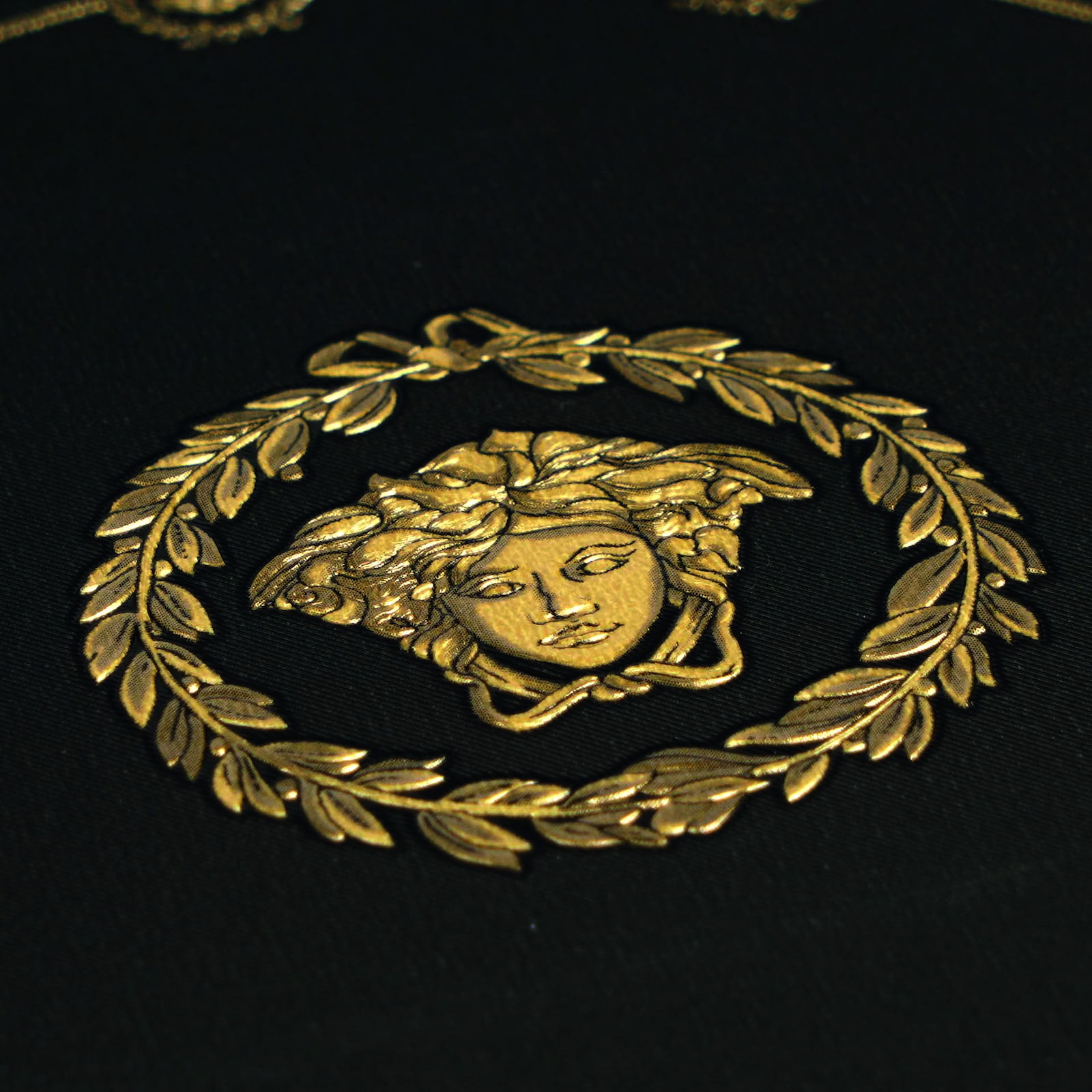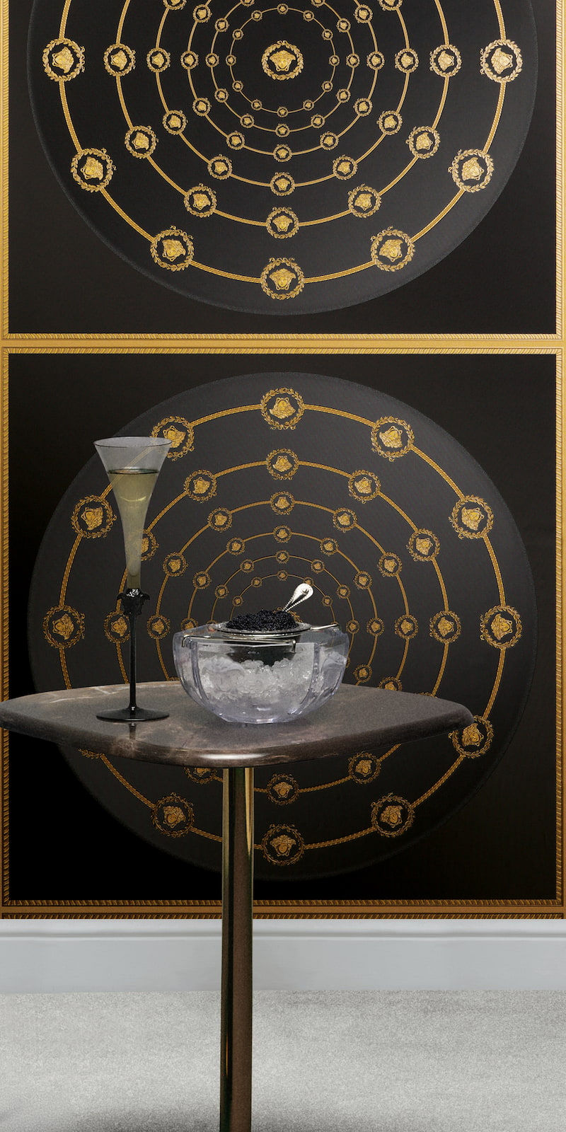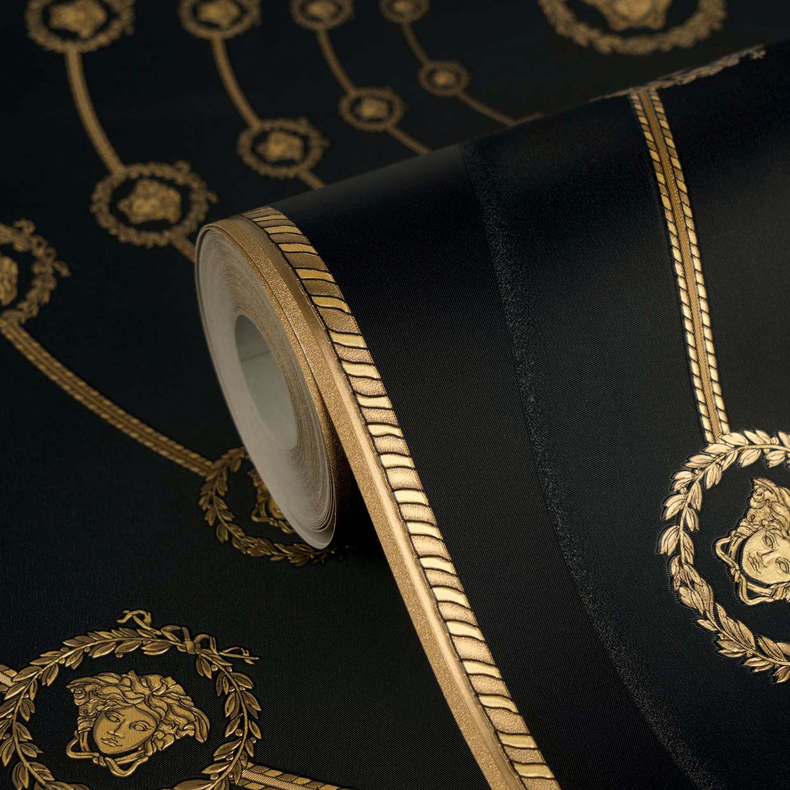 This elegant wallpaper from AS Creation's sixth wallpaper collection in collaboration with Versace opens a new chapter in luxurious wall decoration. Inspired by the DNA of the Versace fashion house, it is interpreted in a contemporary design language. The non-woven wallpaper 79175-5 features a graphic motif with circles and the Medusa emblem in black with a metallic gold effect. Discover the complete collection in our shop and bring a touch of luxury into your home.