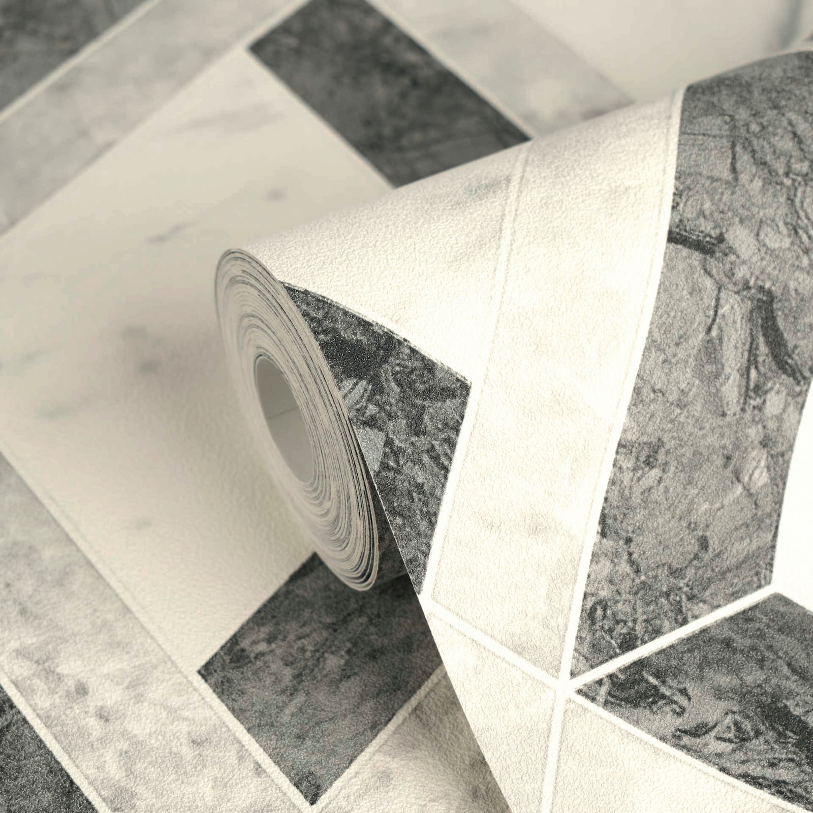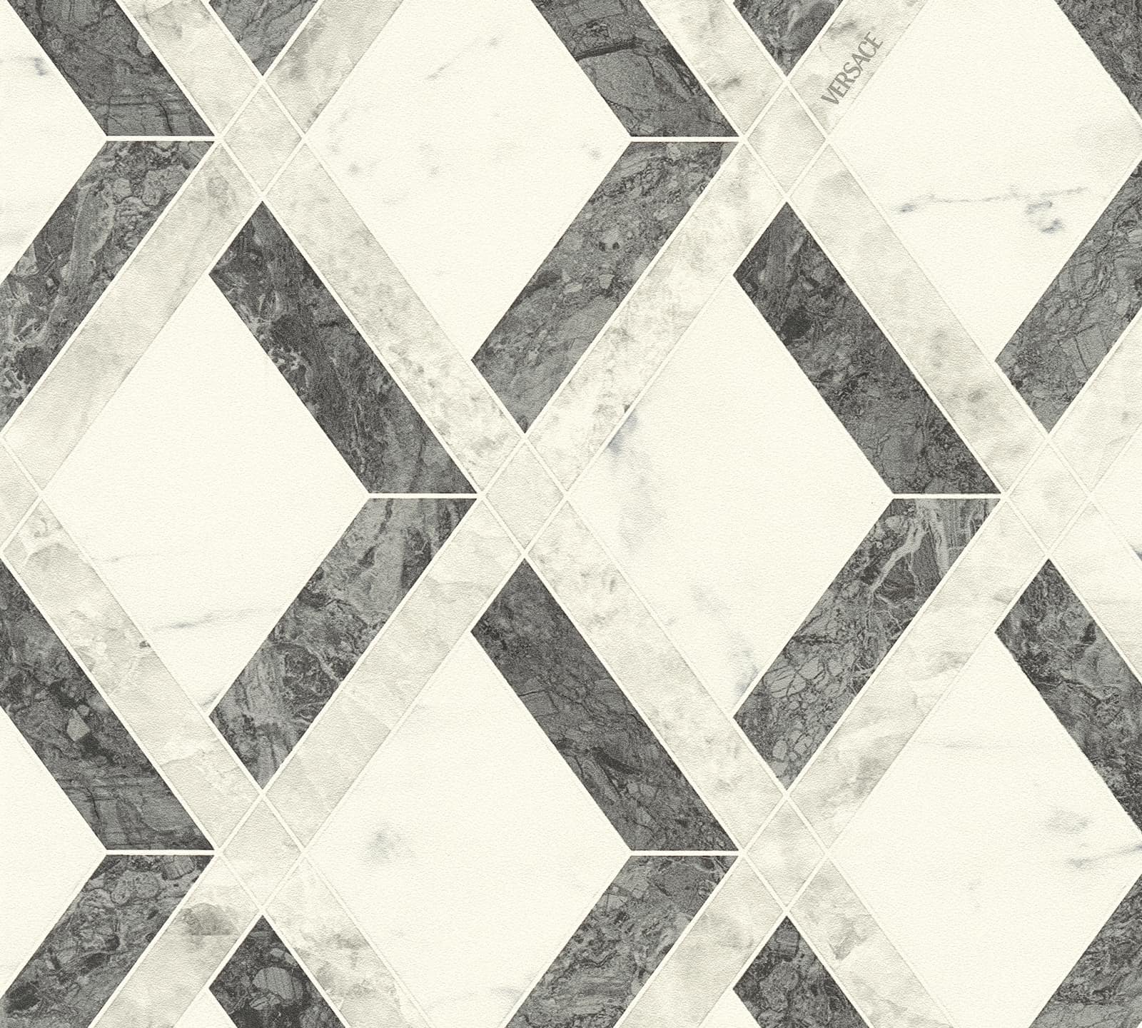 Versace wallpaper diamond pattern marble grey black 79133-3