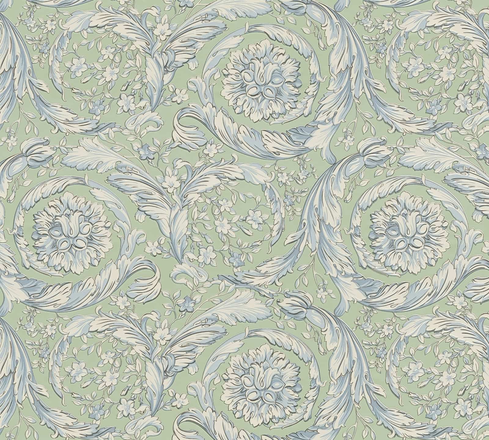 Versace Wallpaper Floral Green White Blue 79135-1